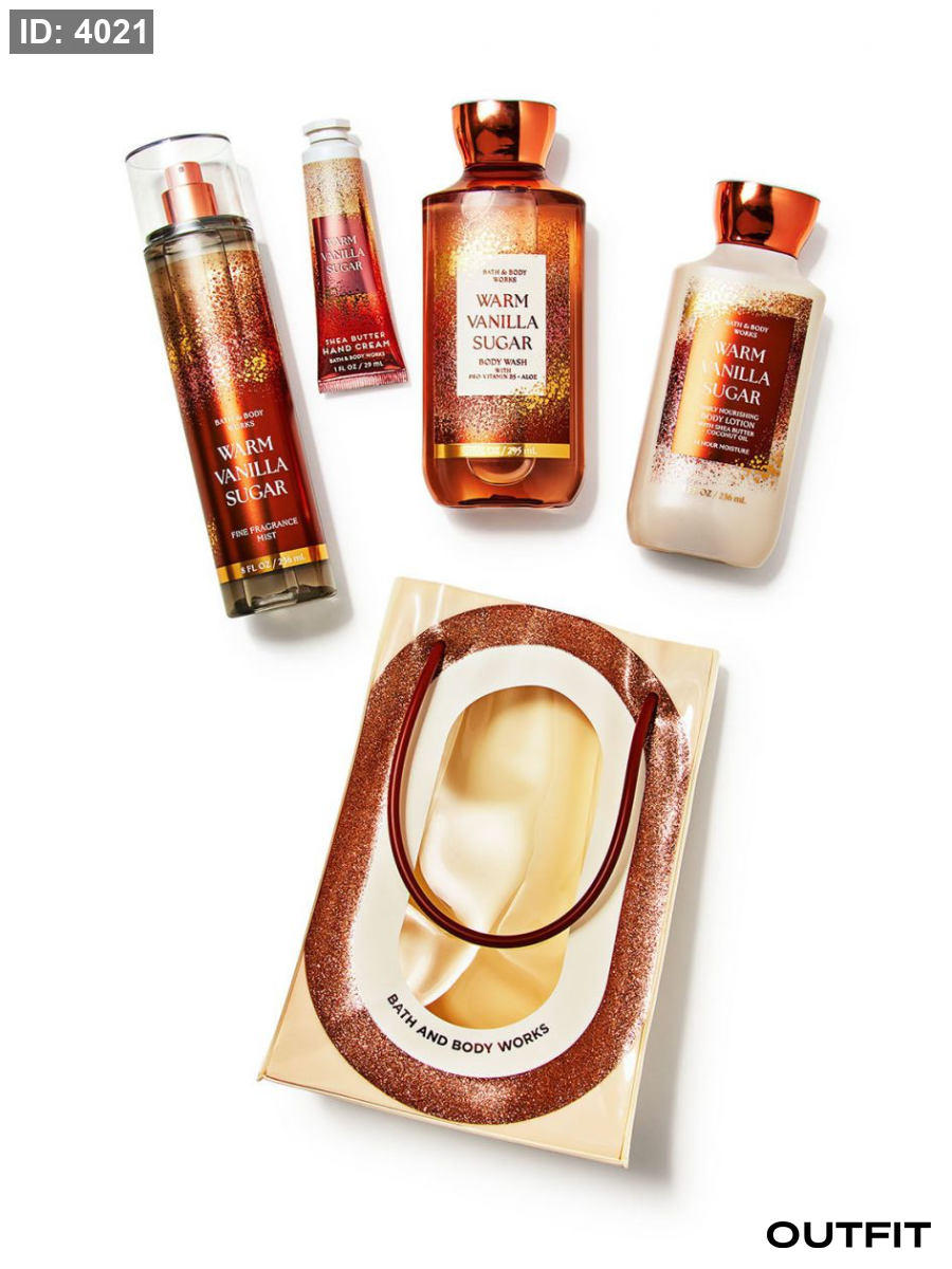 Contains: shower gel (295 ml), body lotion (236 ml), perfumed body lotion (236 ml) and hand cream (29 ml).