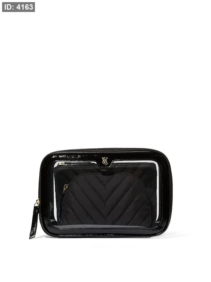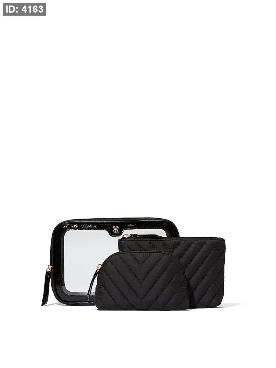 Triple the glam. This signature V-Quilt trio fits everything you could ever need. Together or separate, the clear exterior to helps you quickly find what you’re looking for.
