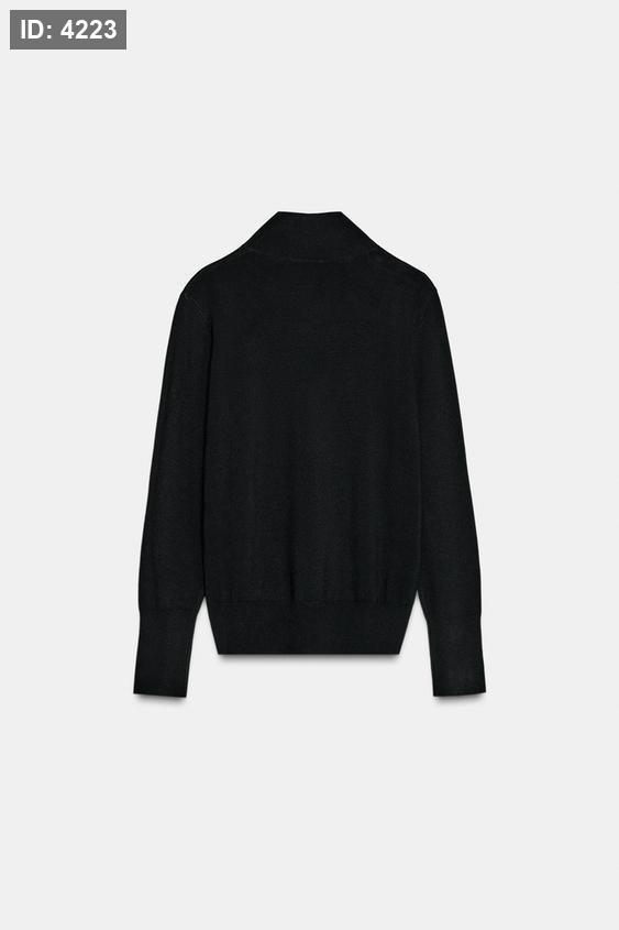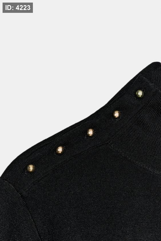 Plain knit jumper with a high neck and long sleeves. Features gold-toned button detailing on the shoulder.