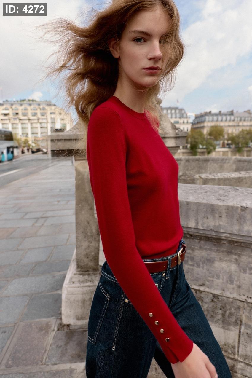 Round neck, long sleeve jumper with button detailing.