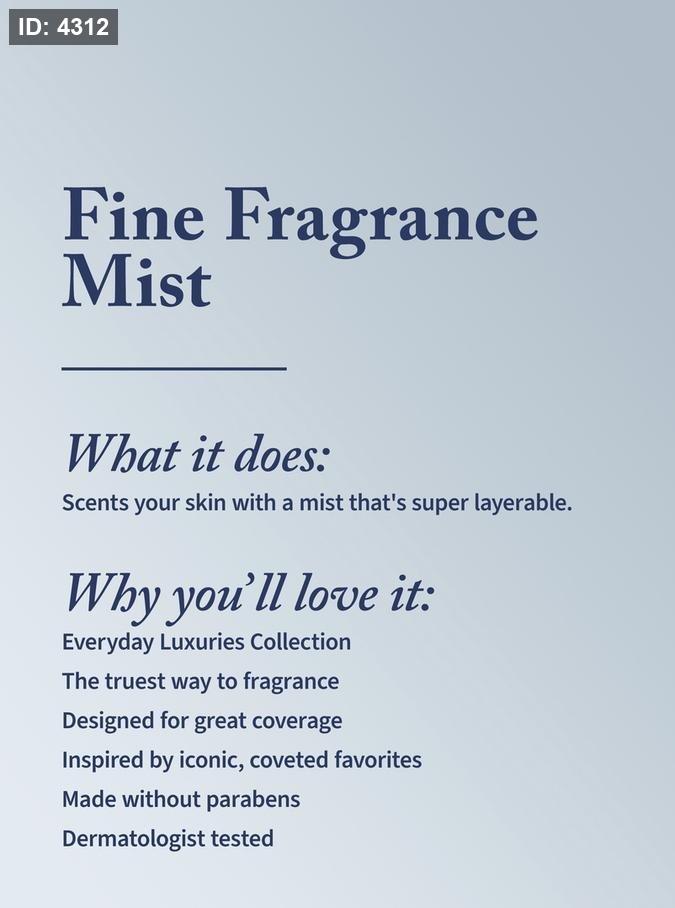 Fragrance notes: pearlized pink pepper, white roses and sheer sandalwood.
