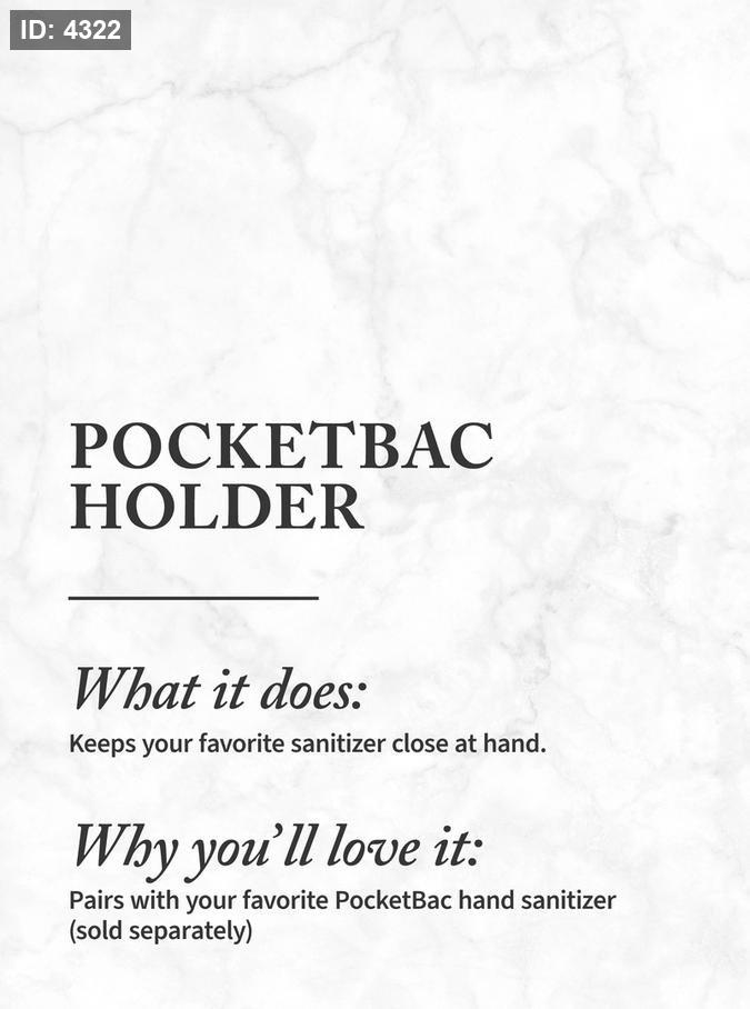 Pairs with your favorite PocketBac hand sanitizer (sold separately)