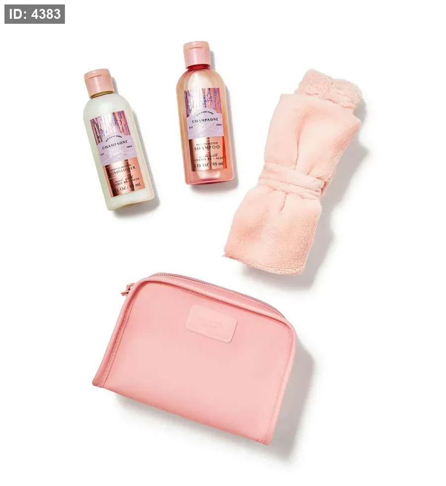• Includes travel-size (3 oz) shampoo and travel-size (3 oz) conditioner in Champagne Toast fragrance, and a headband.