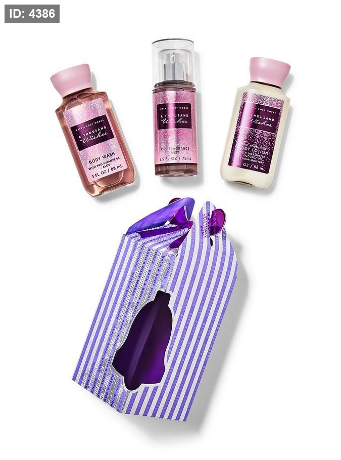 Includes travel size body wash (3 fl oz), body cream (2.5 oz) and fine fragrance mist (3 fl oz)