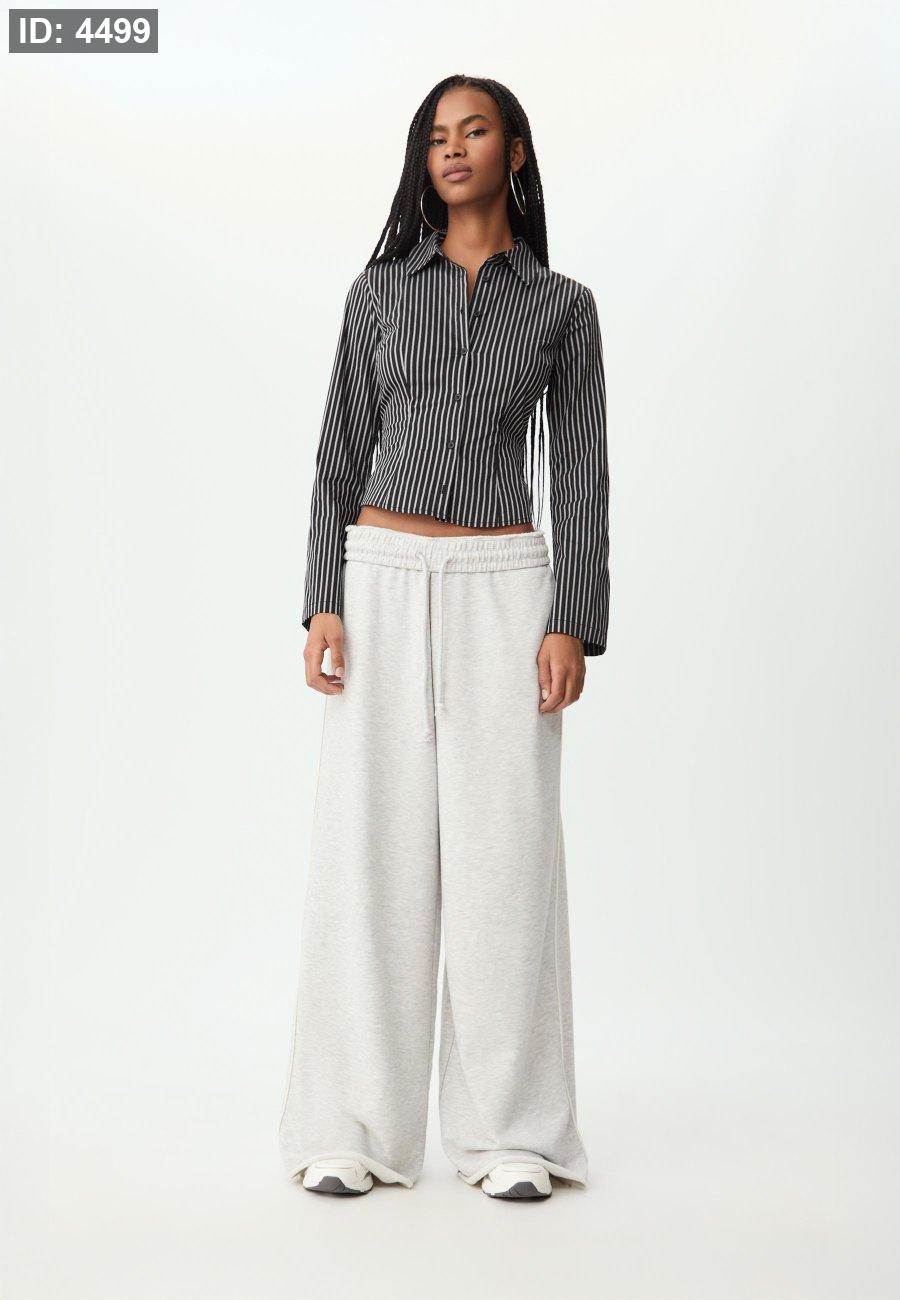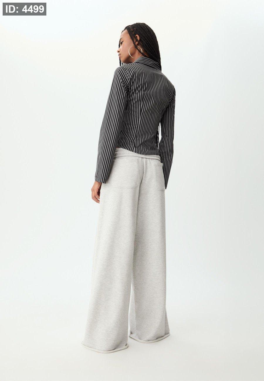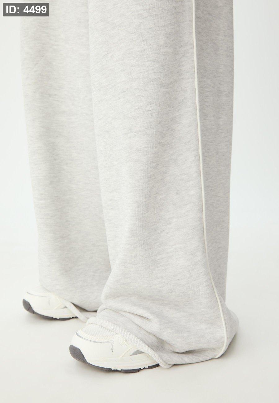 Mid-rise straight-leg trousers with an elasticated waistband, side pockets, back patch pockets and contrast piping on the sides.