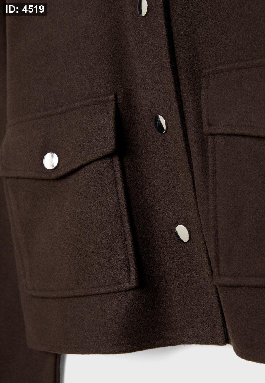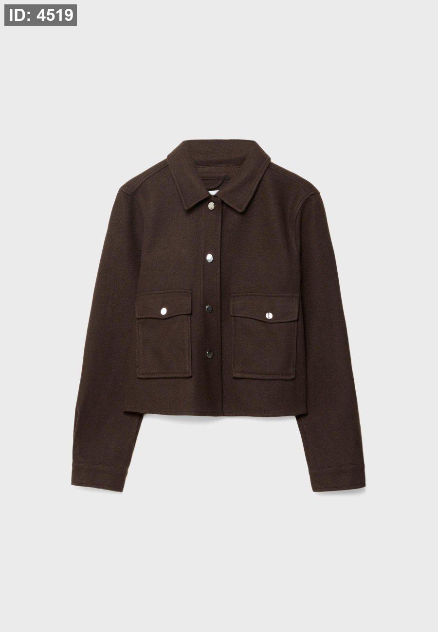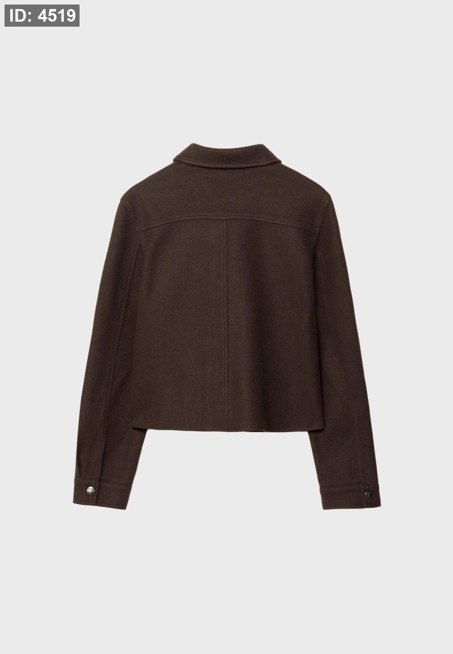 Cropped jacket made from soft-touch fabric. Lapel collar and long cuffed sleeves. Front patch pockets with flaps. Front snap-button fastening. Available in a range of colours.