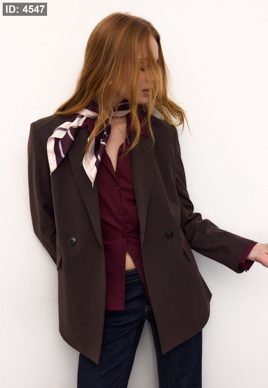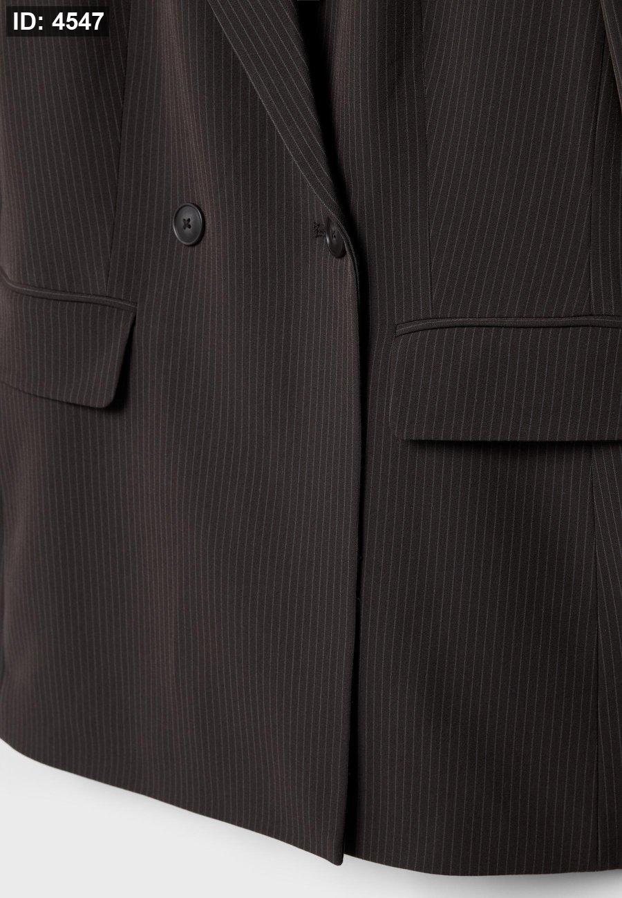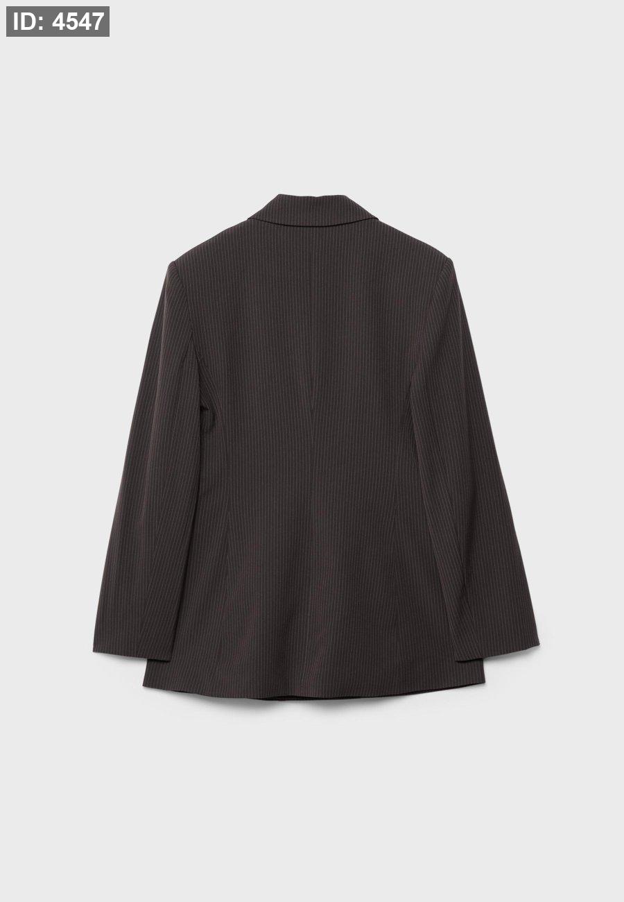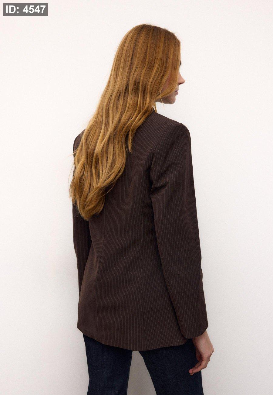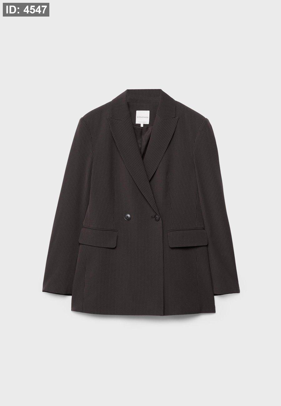 Slim-fit blazer with lapel collar and long sleeves. Fake front pockets with flap. Double front closure with buttons.