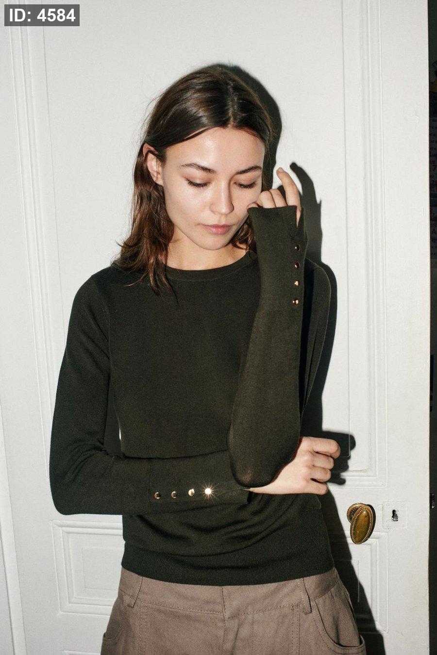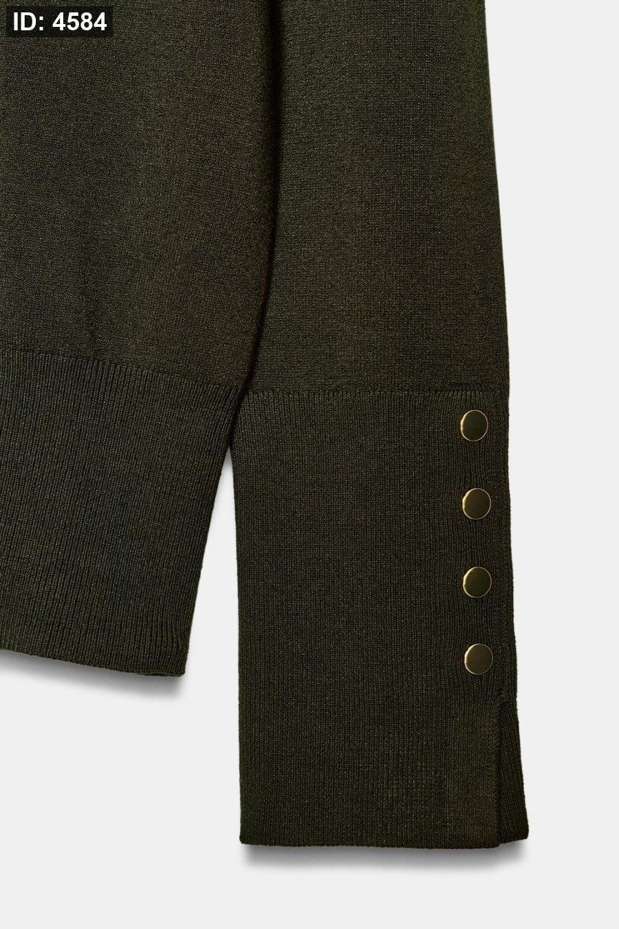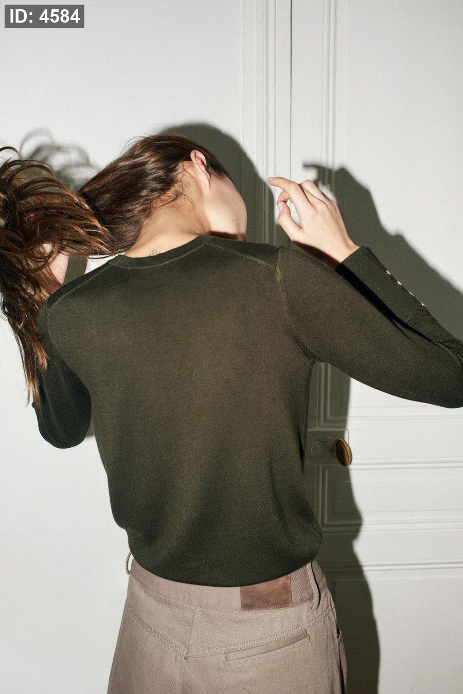 Round neck, long sleeve jumper finished with buttons.