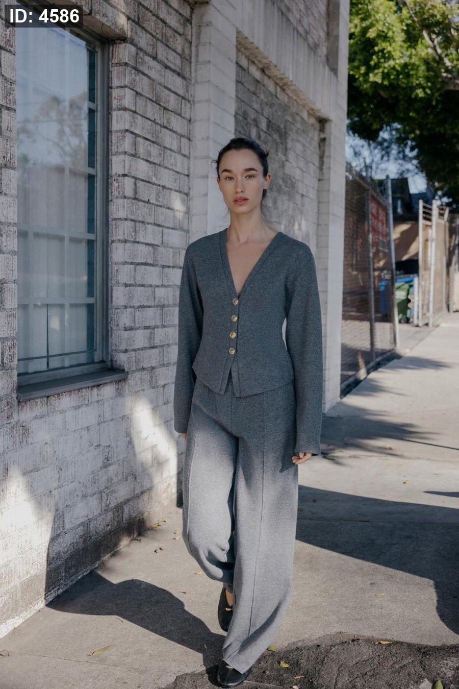 Trousers made with cotton yarn. High waist with elastic waistband. Marked seam detail on the front.