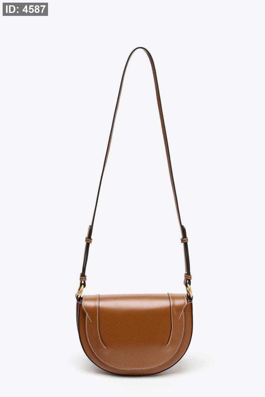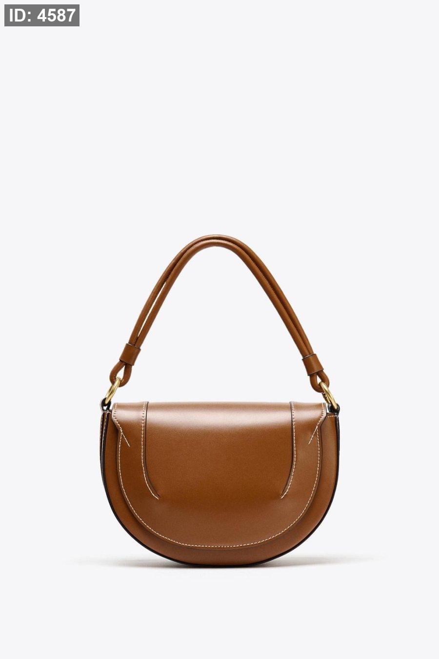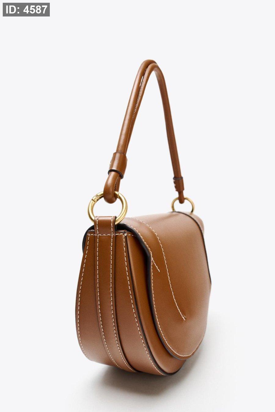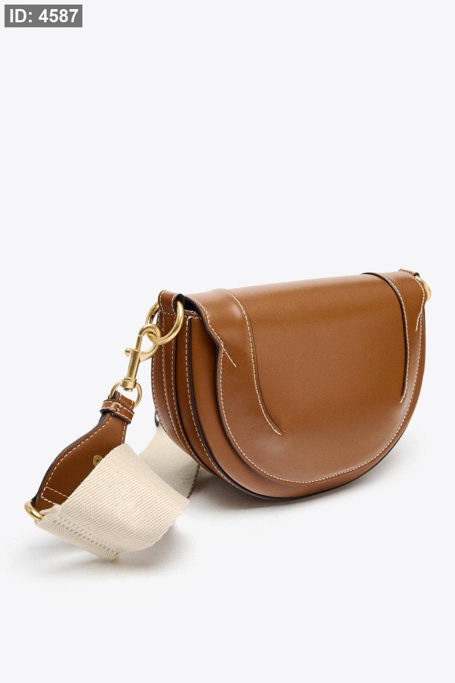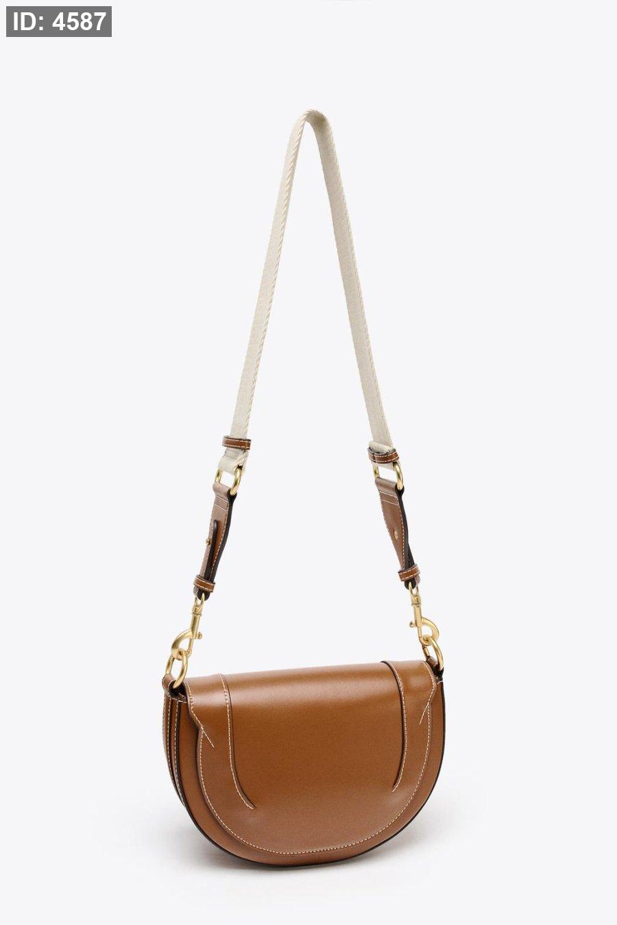 Oval shoulder bag. Round double handle with metallic details. Magnetic closure. Removable crossbody strap in contrasting fabric. Interior bag with metal zipper closure.