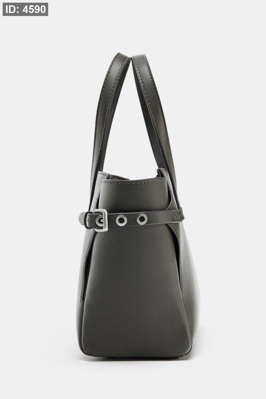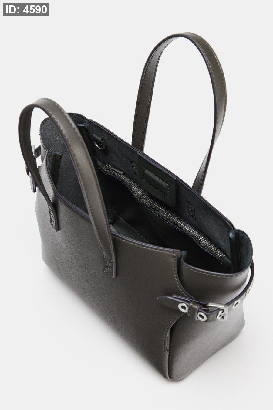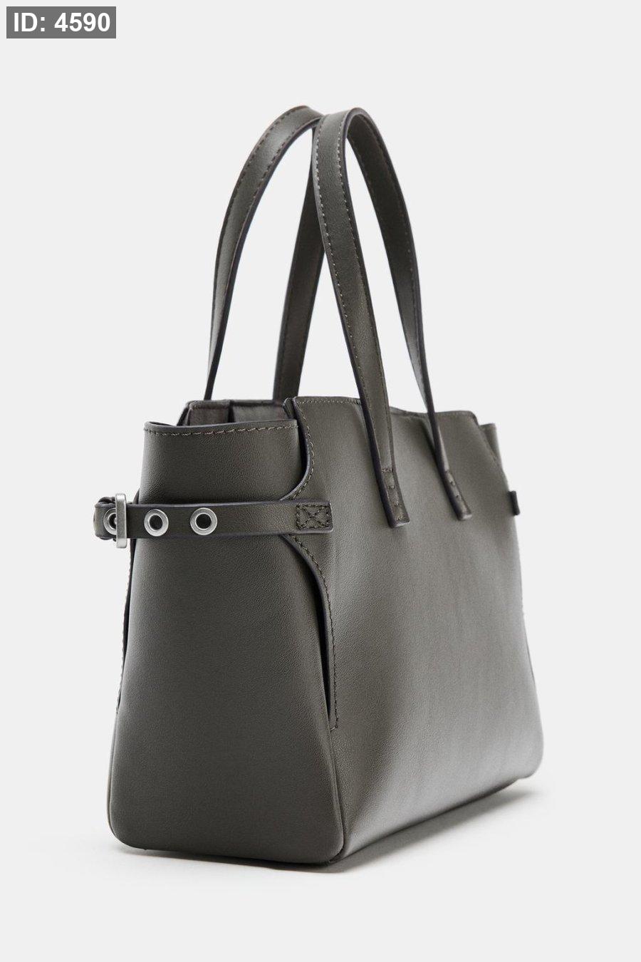 Mini tote bag. Featuring metal eyelet details on the sides. Double top handle and a detachable shoulder strap. Inside compartment with zip closure. Magnetic clasp closure.