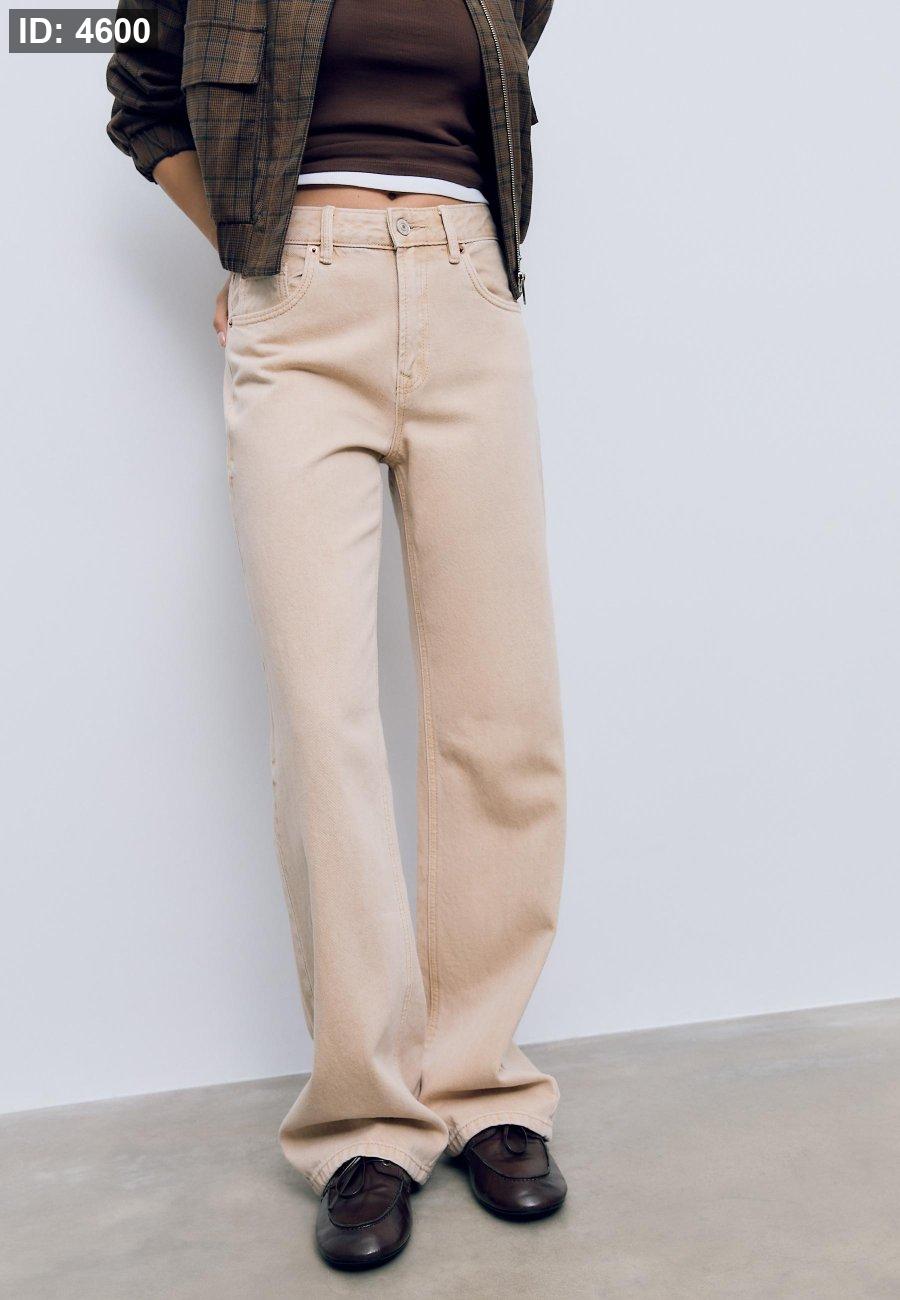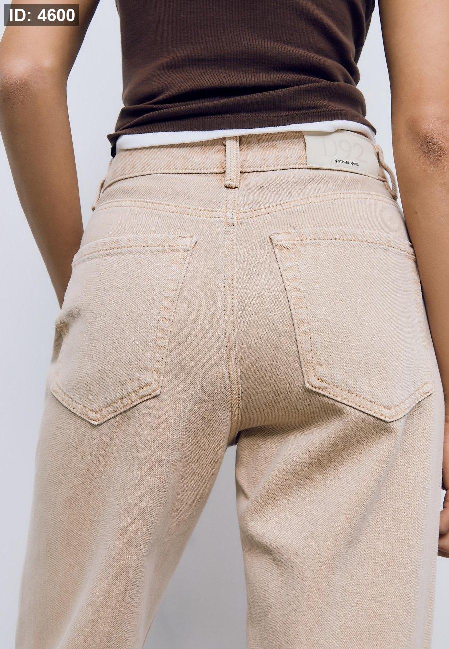 High-waist straight wide-leg jeans with front pockets. Patch pockets on the back. Waistband with belt loops. Straight, wide leg. Front zip and metal button fastening. Available in various colours.