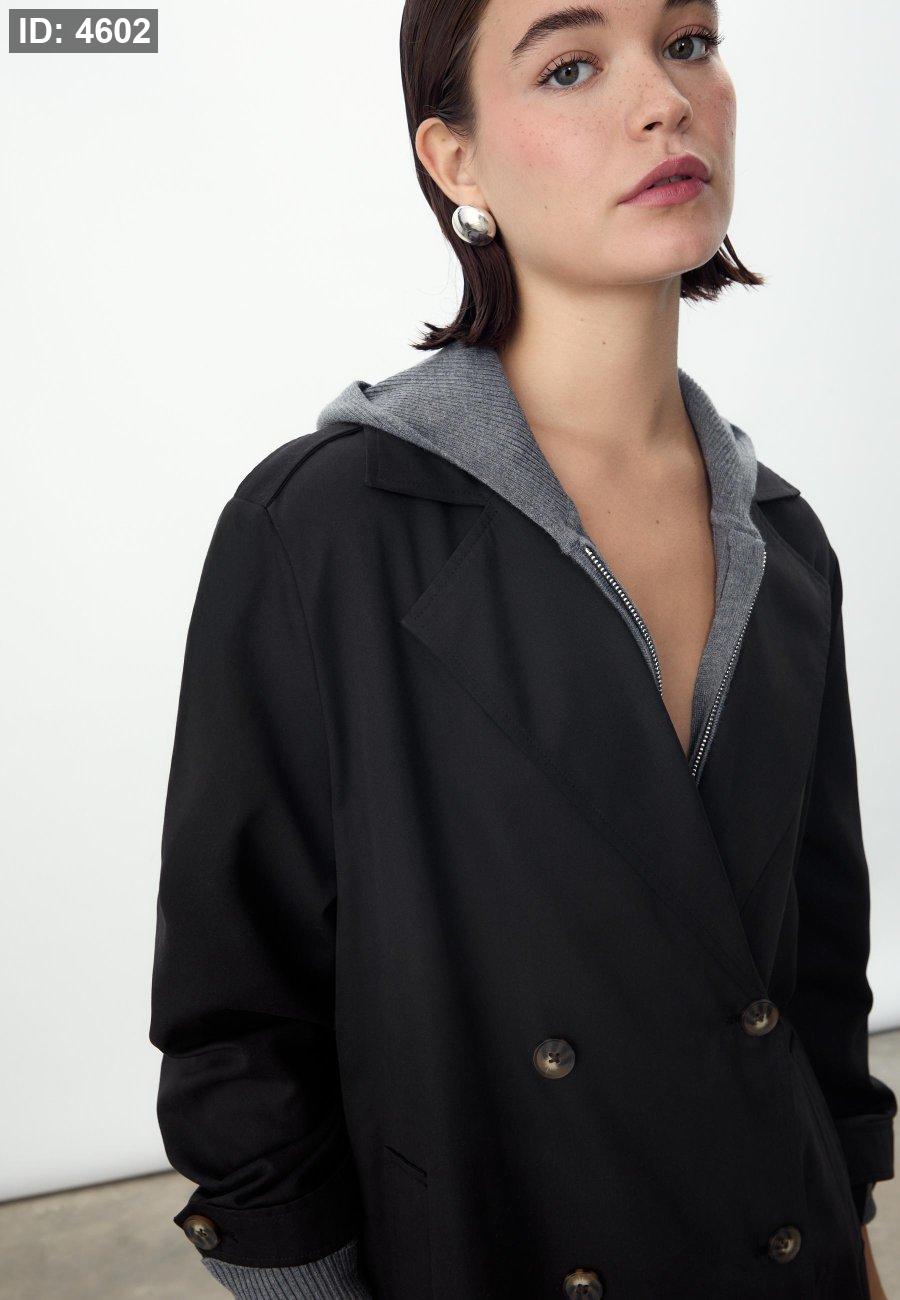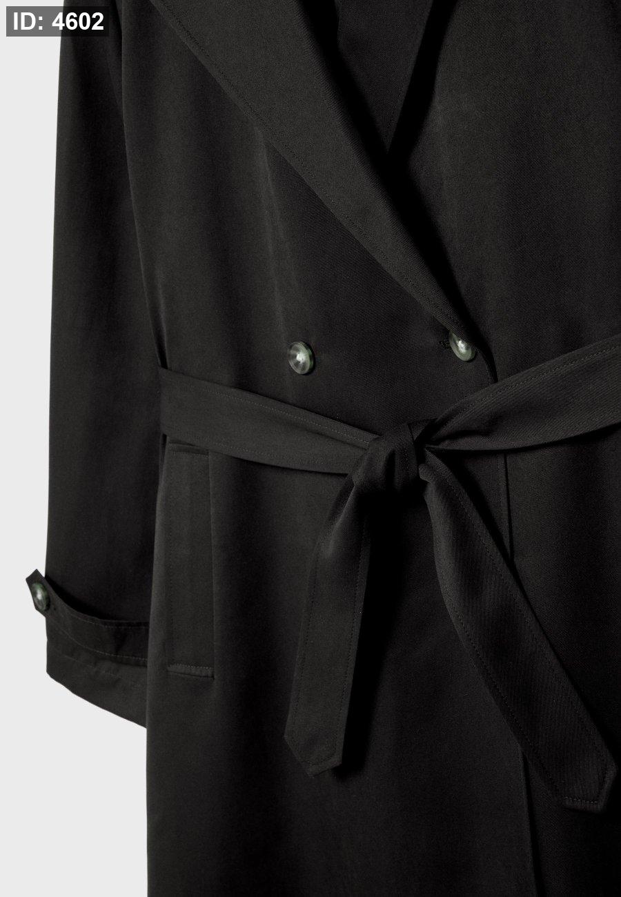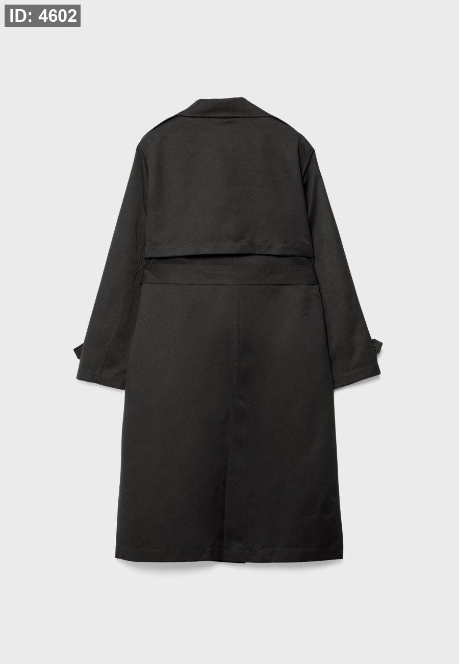 Long flowing trench coat with a lapel collar, long sleeves, side pockets, double-breasted button fastening and a belt. Available in several colours.