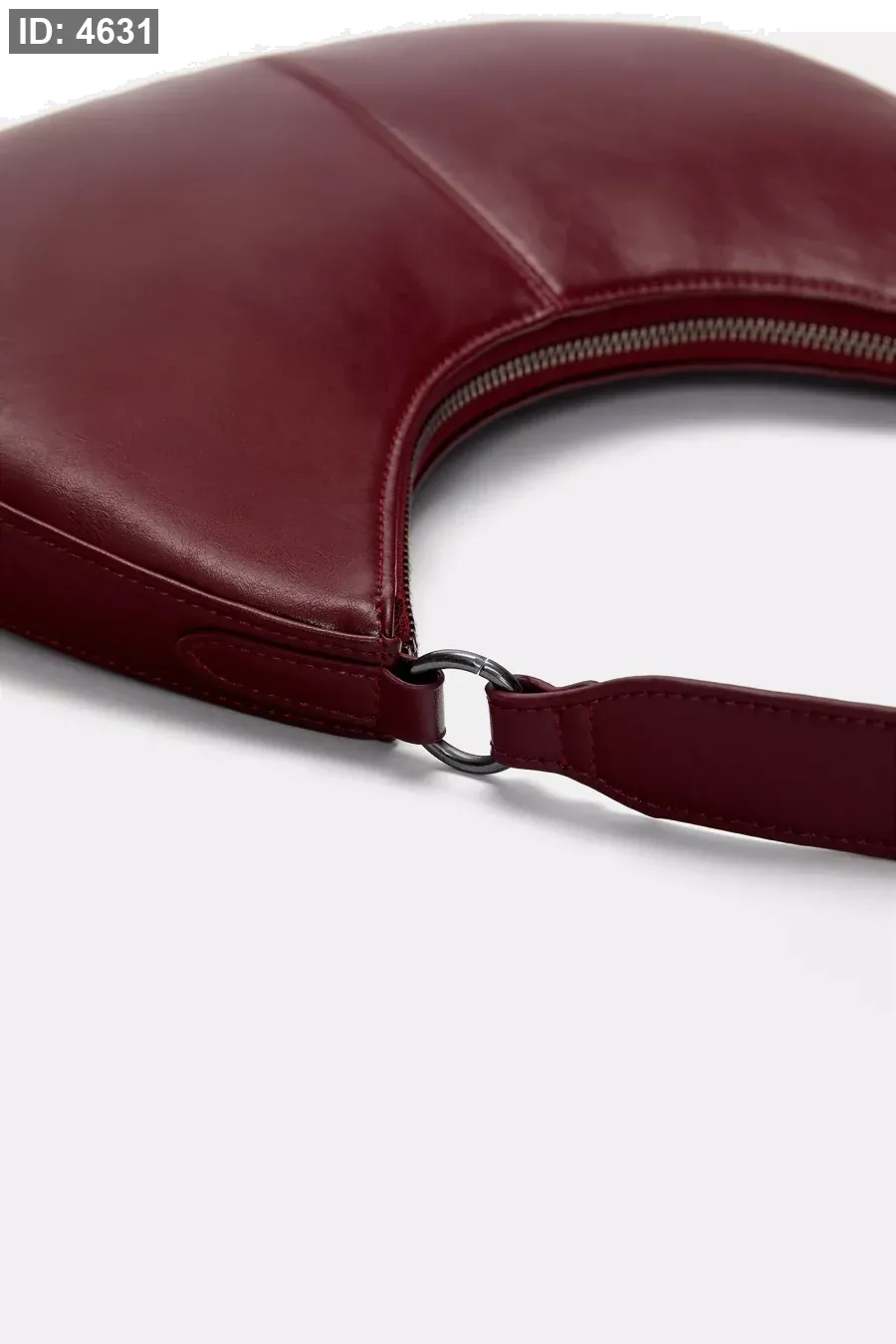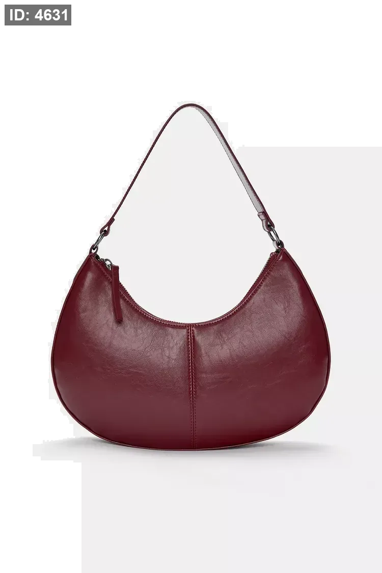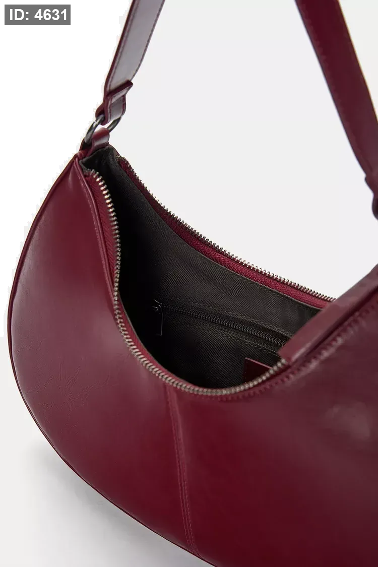 Side bag available in a variety of colors. Half-moon shape. Short adjustable shoulder strap. Zipper closure.