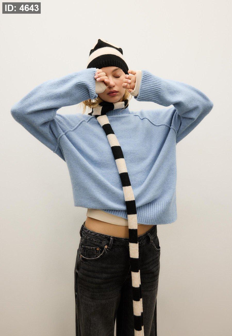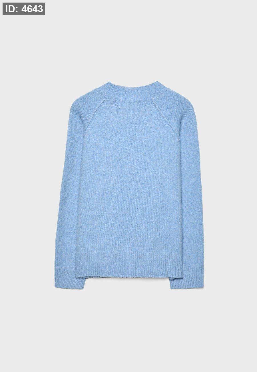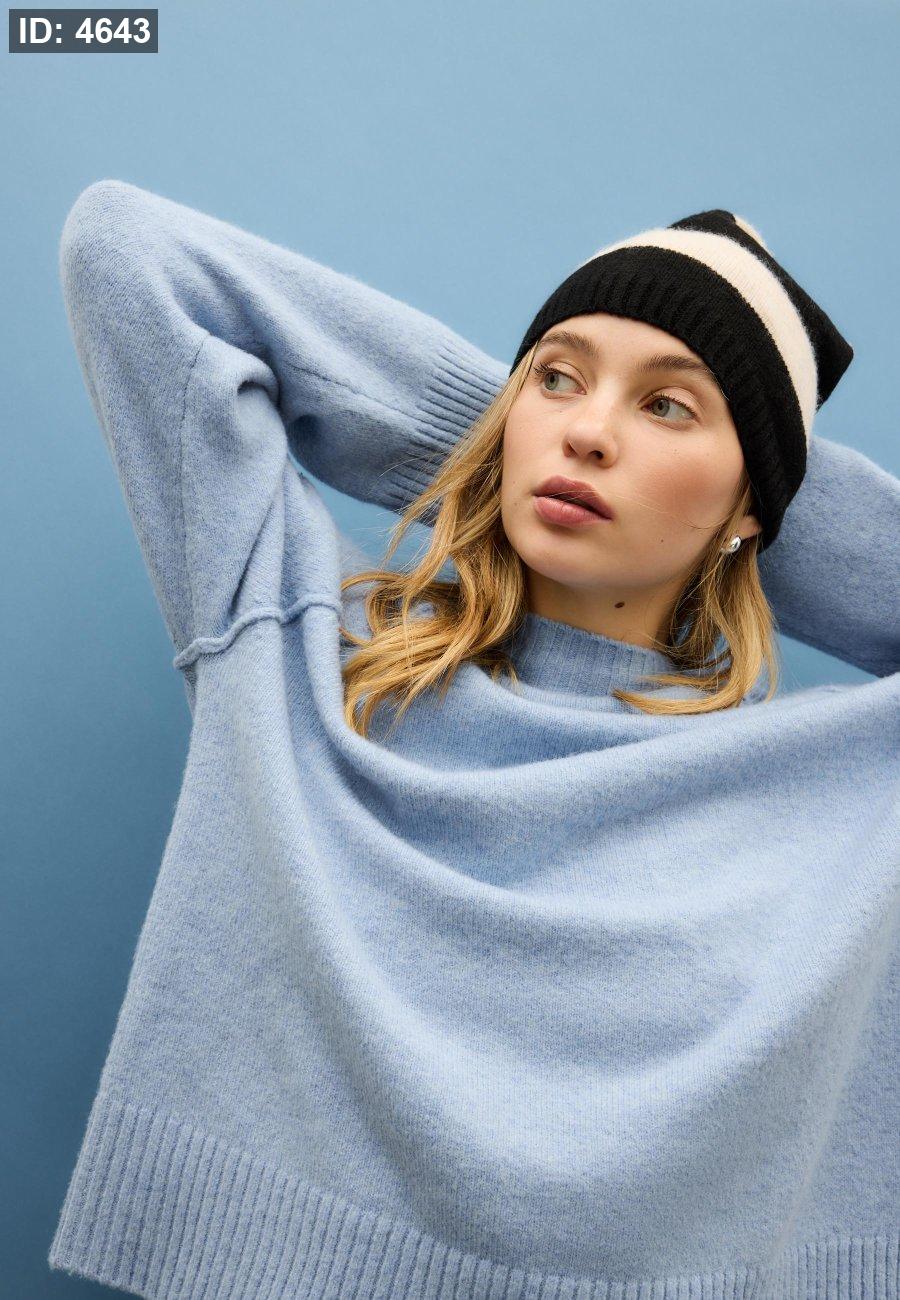 Knitted jumper with a round neck and long raglan sleeves. Ribbed trims. Available in various colours.