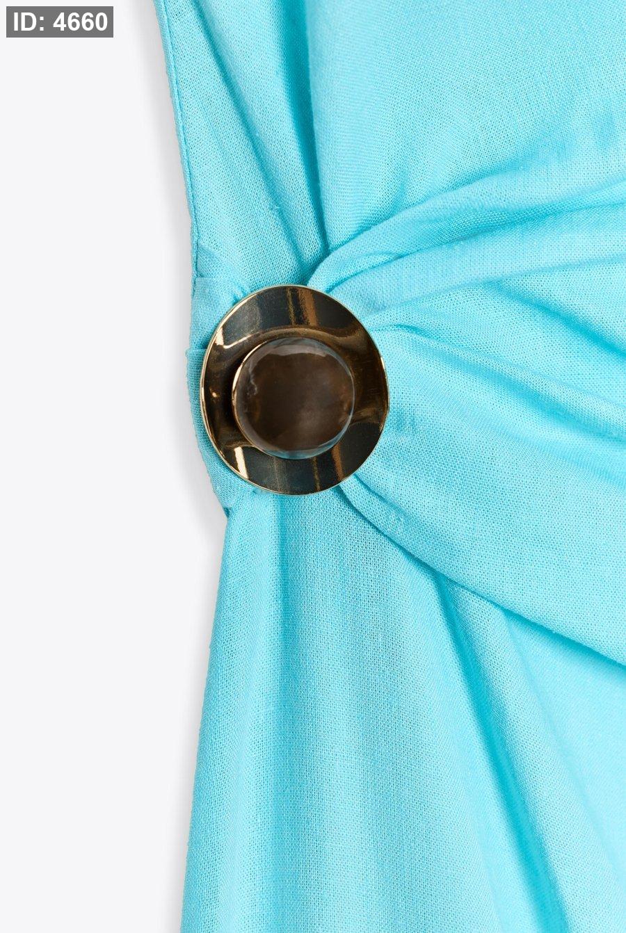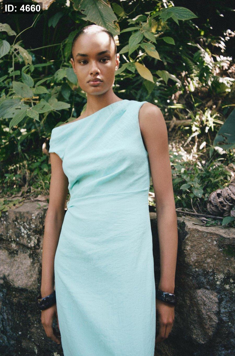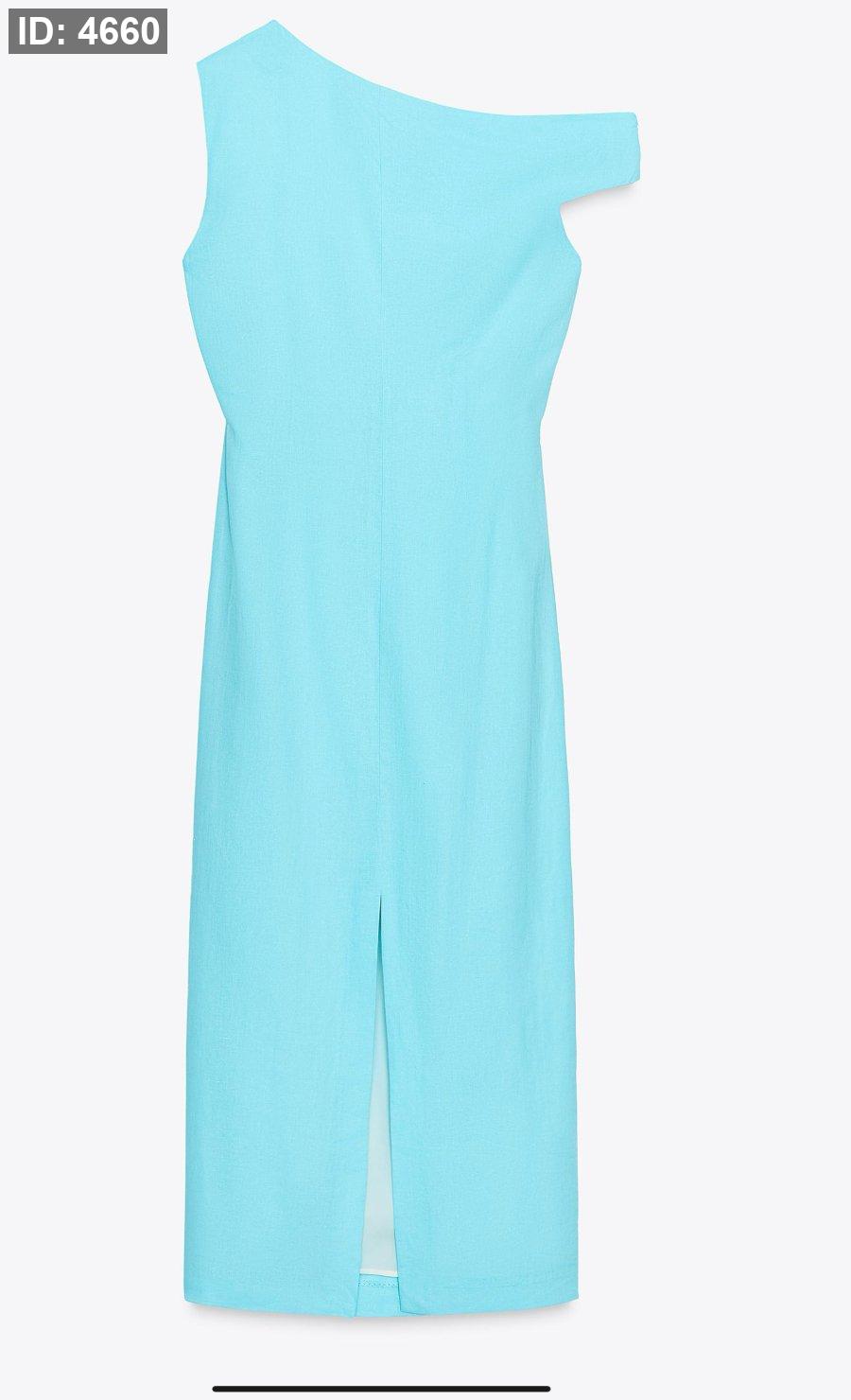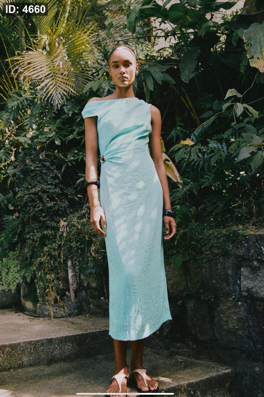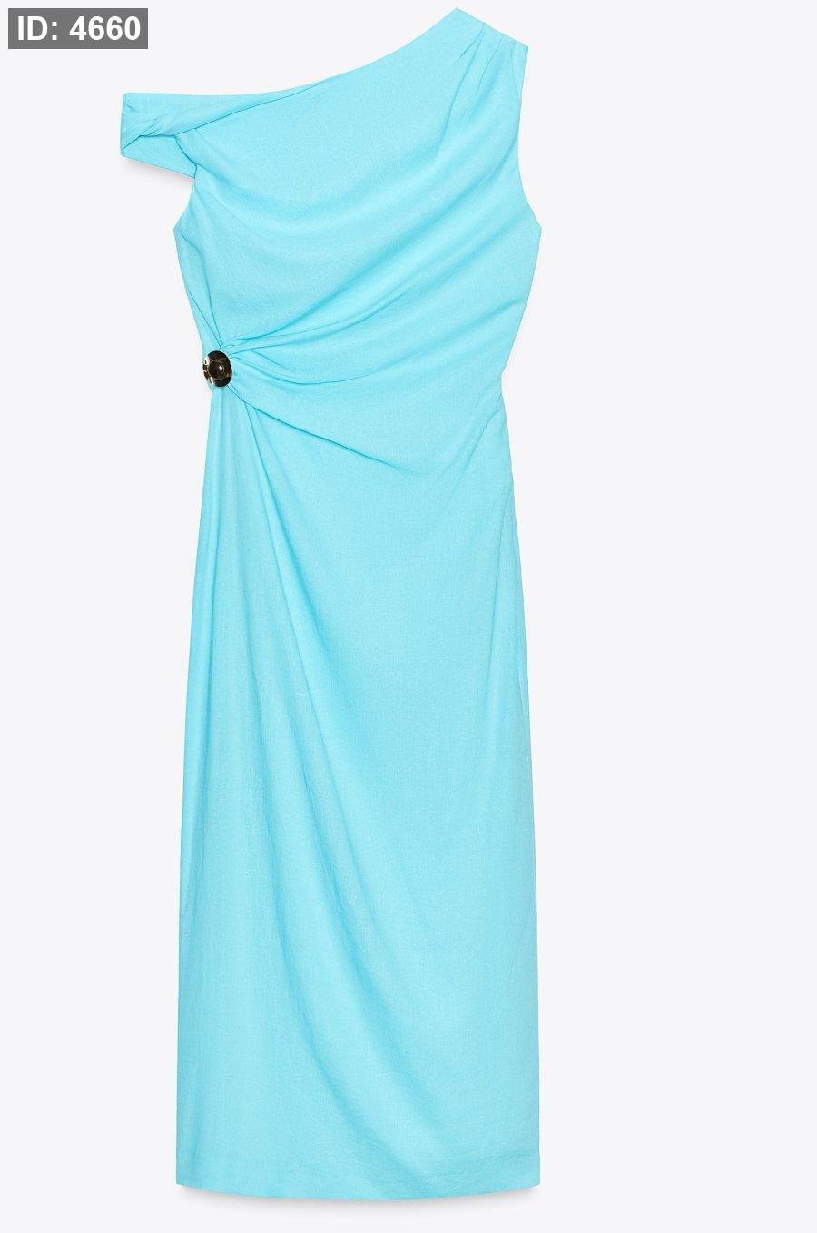 APPLIQUÉ ASYMMETRIC LINEN BLEND MIDI DRESS