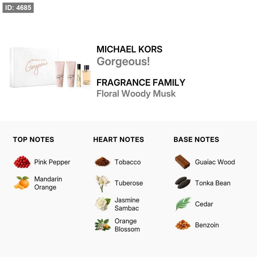 Experience the bold beauty of Michael Kors Gorgeous! — a fragrance that celebrates confidence, charm, and the power of being yourself. Launched in 2021, this elegant perfume belongs to the Floral Woody Musk family, blending warm, fresh, and floral notes for a scent that’s both inspiring and unforgettable.