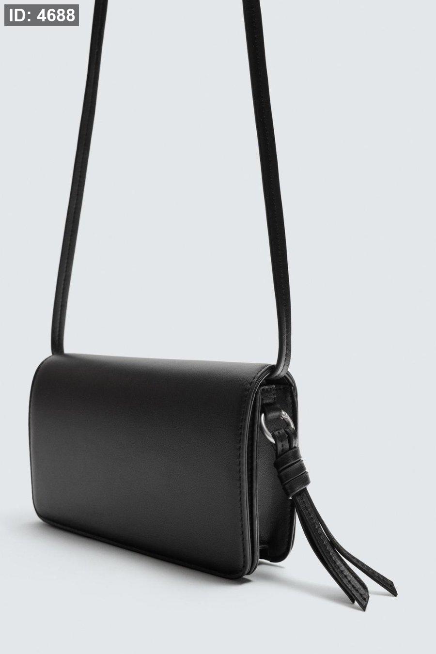 Plain crossbody bag. Main compartment with magnetic flap closure. Interior flat pocket. Charm detail. Adjustable shoulder strap.