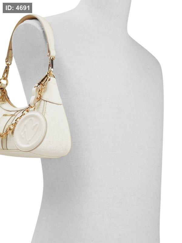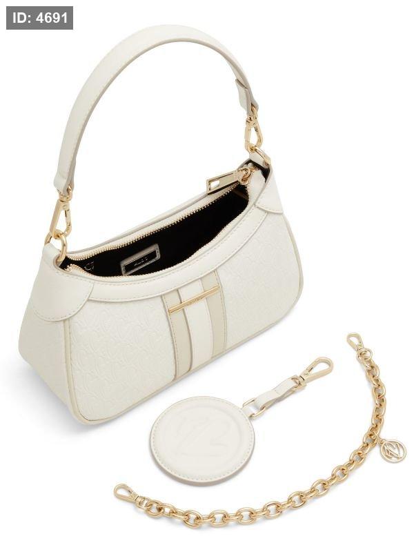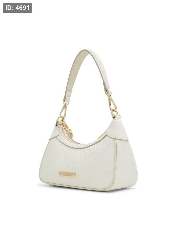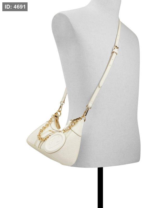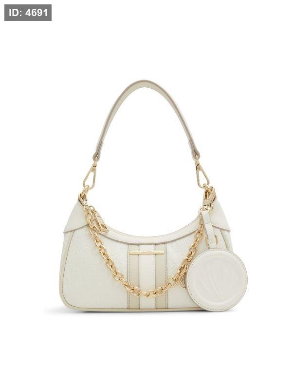 An elegant women's side bag designed in a compact size and easy to carry. Made of high-quality leather-look material. Has a rectangular shape with a rounded finish. Has a short carrying strap and a removable golden chain strap. Combines golden details and a round pendant with a matching finish that provides a unique touch to the look of the bag.