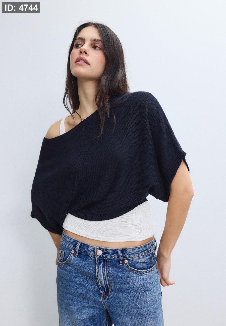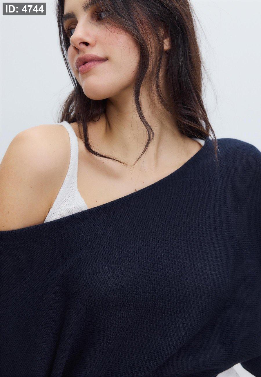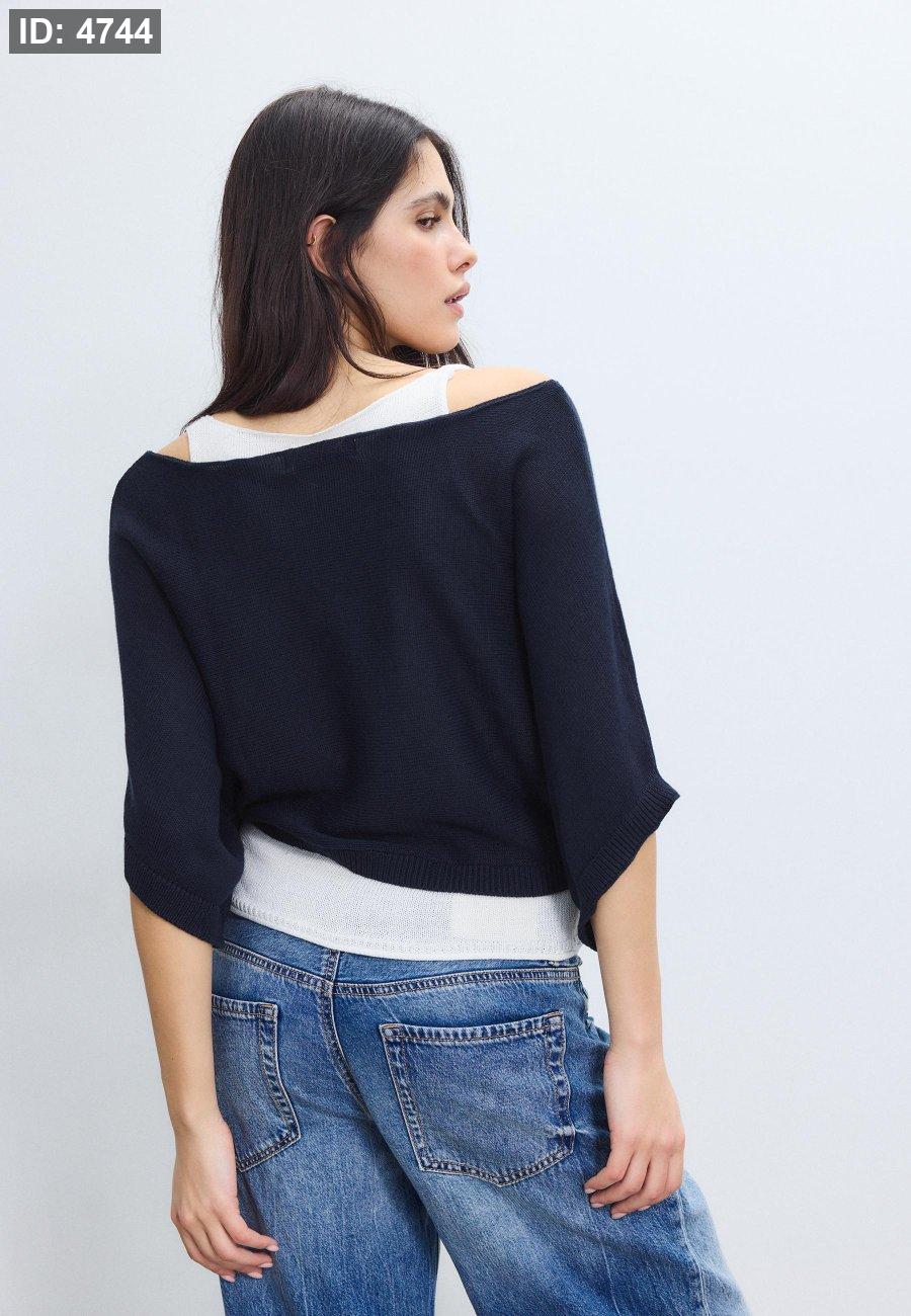 Knitted sweater with wide collar and layers