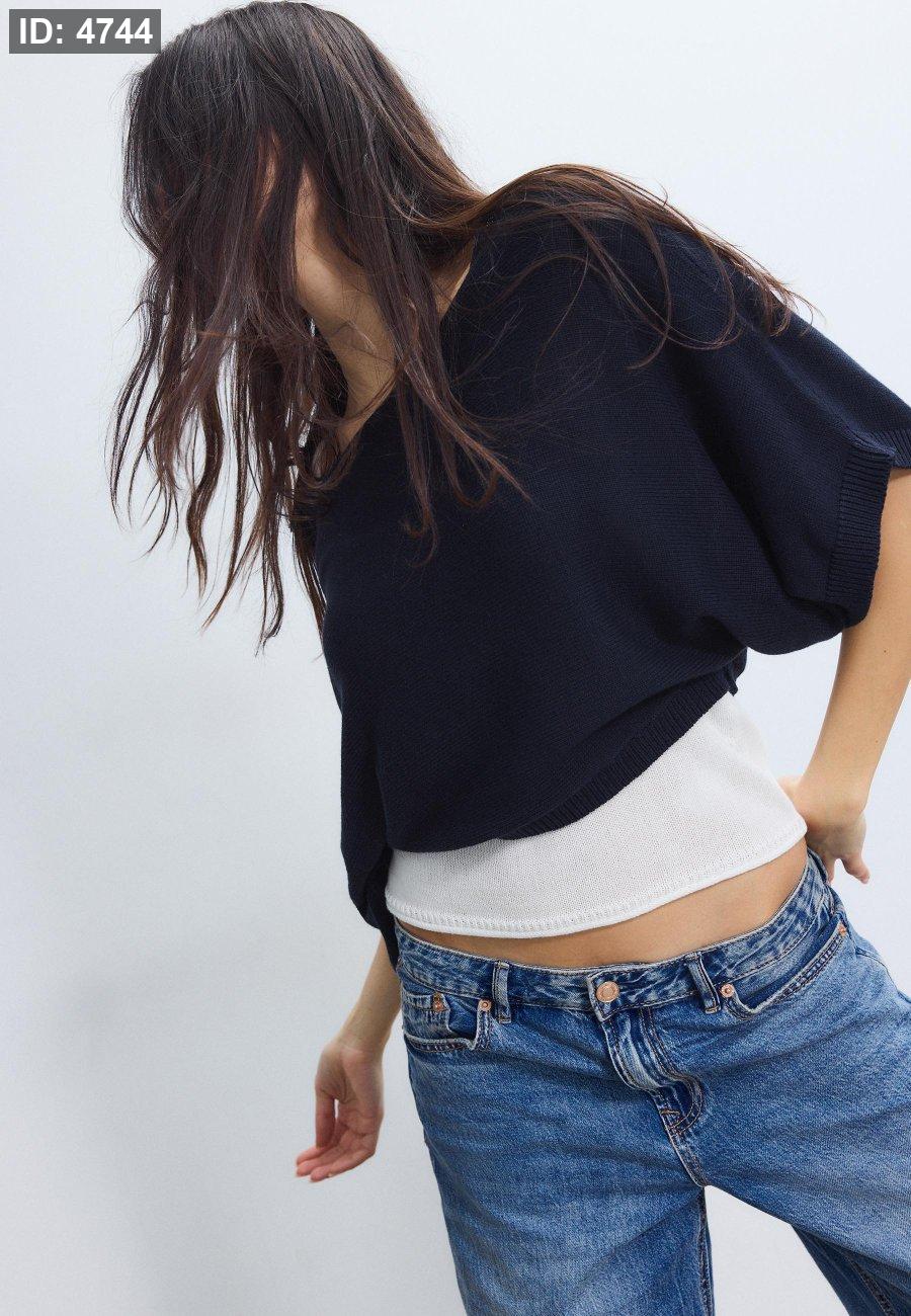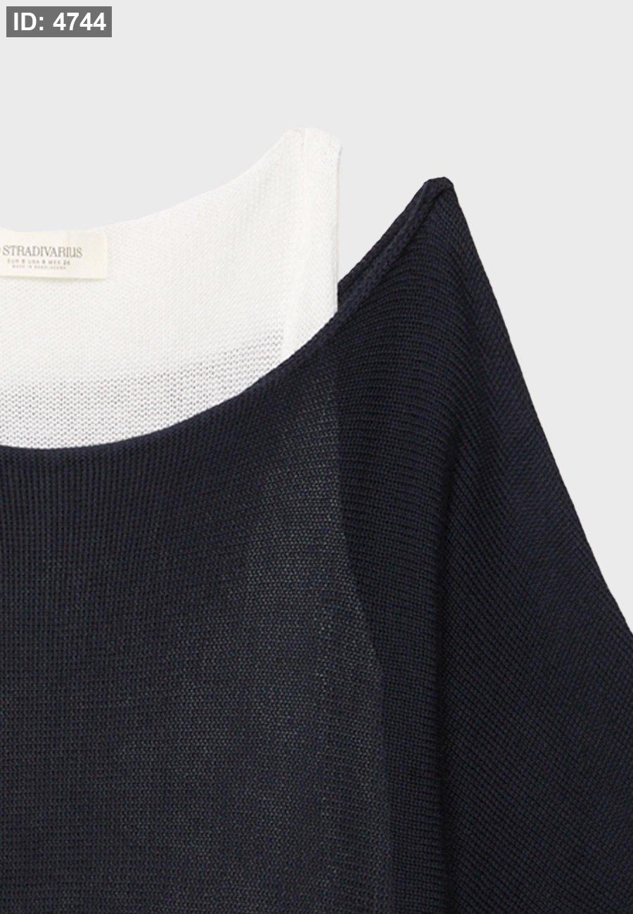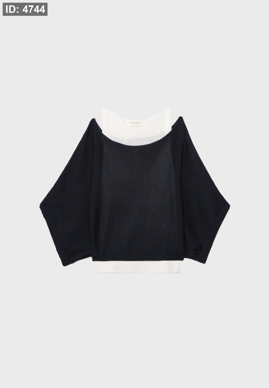 Knitted sweater with wide collar and layers