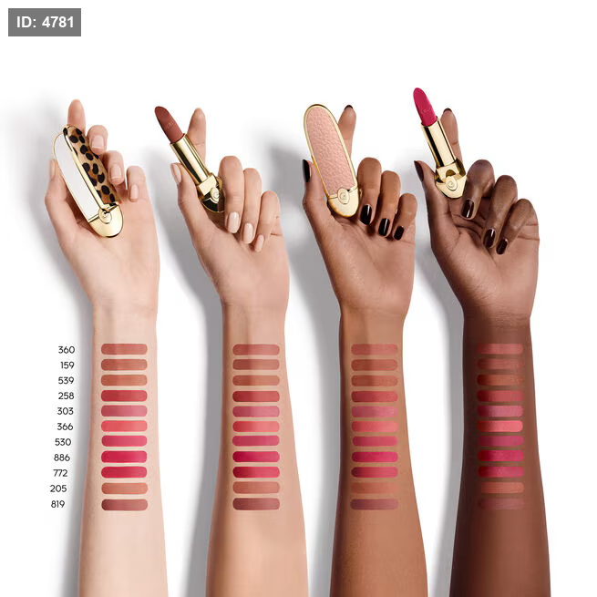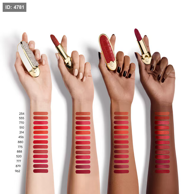 Rouge G, Guerlain’s iconic jewel lipstick, has been reinvented in an ultra-care version paired with a wide range of highly pigmented, long-wearing shades available in a satin or velvet matte version. 89% skincare-based¹, its formula exclusively developed with natural-origin waxes includes a lily oleo extract with smoothing and regenerating properties for exceptional comfort².