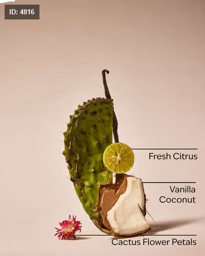 Fragrance notes: cactus flower petals, fresh citrus and vanilla coconut.