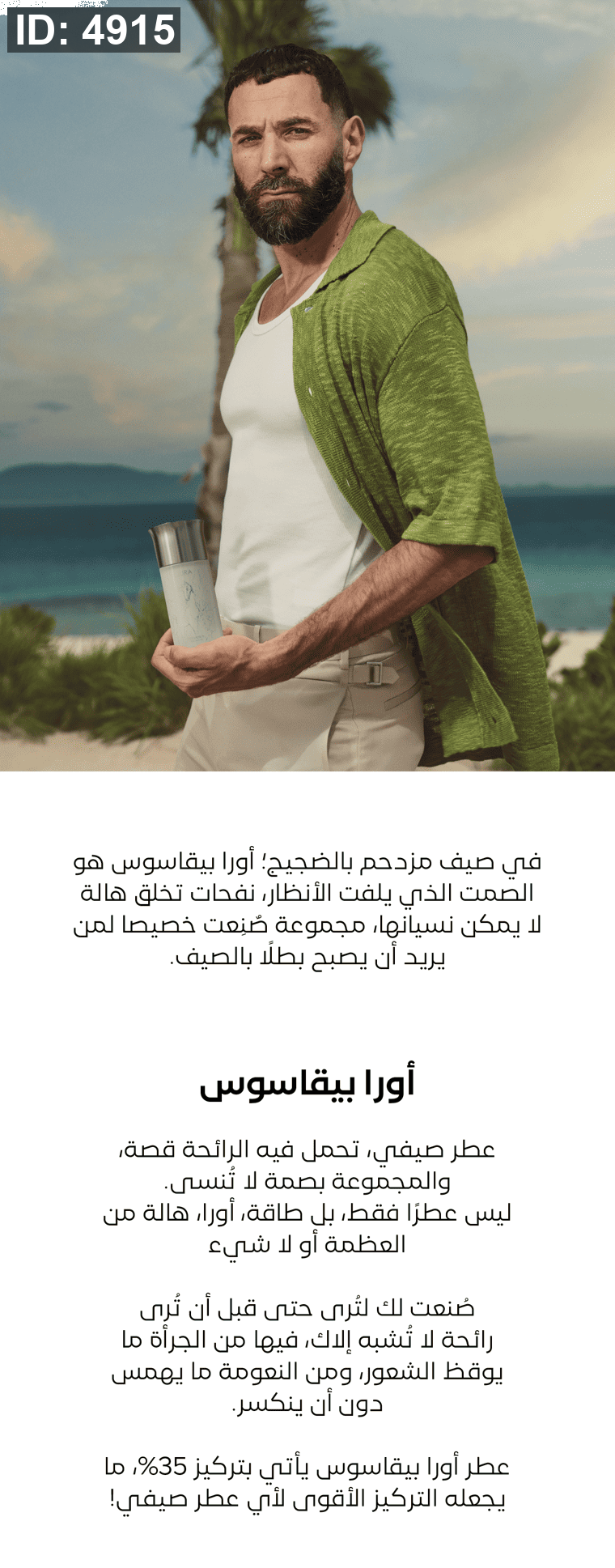 عطر أورا بيقاسوس يأتي بتركيز 35%، ما يجعله التركيز الأقوى لأي عطر صيفي!