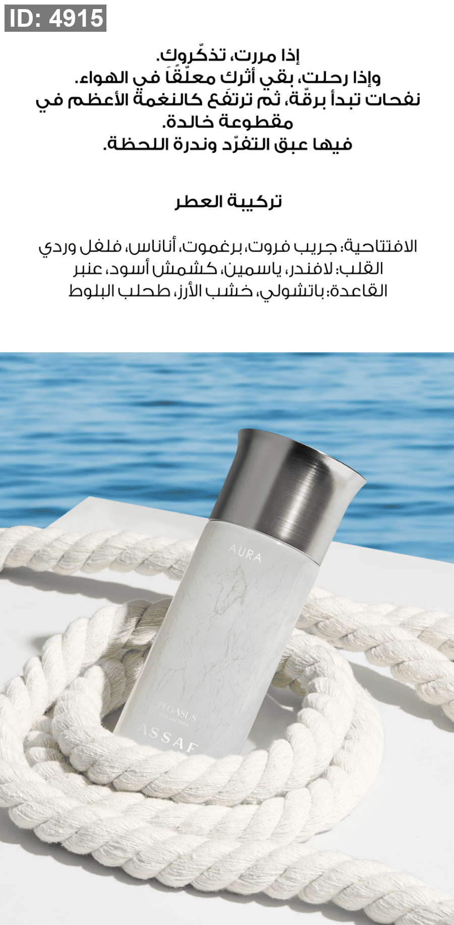 في صيف مزدحم بالضجيج؛ أورا بيقاسوس هو الصمت الذي يلفت الأنظار، نفحات تخلق هالة لا يمكن نسيانها، مجموعة صُنِعت خصيصا لمن يريد أن يصبح بطلا بالصيف.