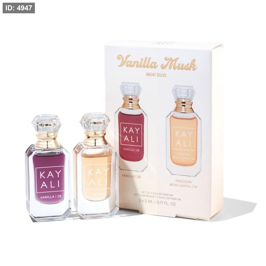 Enjoy two iconic fragrances with the KAYALI Vanilla Musk Mini Duo, a fragrance set featuring Vanilla | 28 Eau de Parfum and Freedom Musk Santal | 34 Eau de Parfum in 5ml dabbers. Vanilla | 28 Eau de Parfum blends rich vanillas with vanilla orchid, sweet tonka and warm brown sugar, enhanced by velvety tonka for a smooth, gourmand finish.