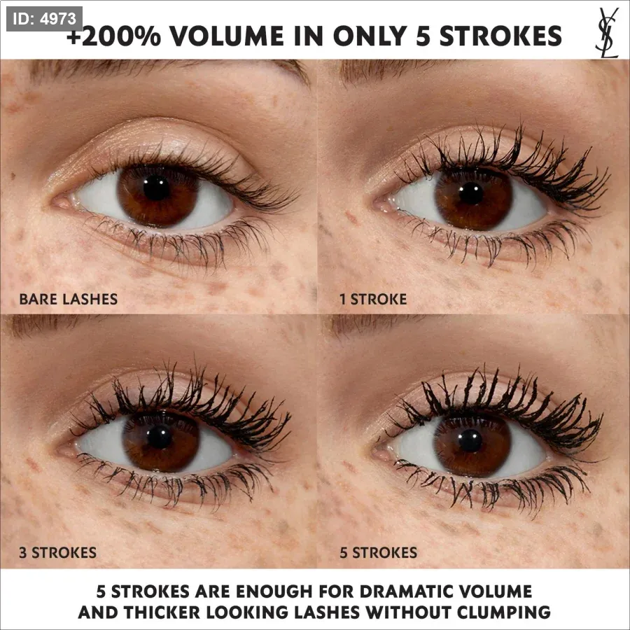 Lash Clash Extreme Volume Mascara adds highly pigmented black color and 200% more volume with up to 24-hour smudgeproof wear. The massive Double Conical Brush coats all lashes and holds maximal formula for high volume in just one swipe. The formula lets you wear any level of volume from one to five strokes. Lash Clash is outfitted in sleek Yves Saint Laurent packaging to become the ultimate luxury must-have.