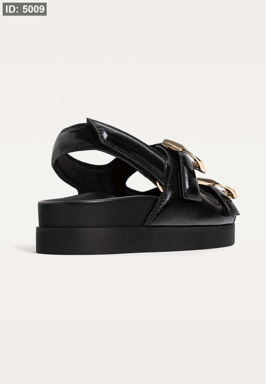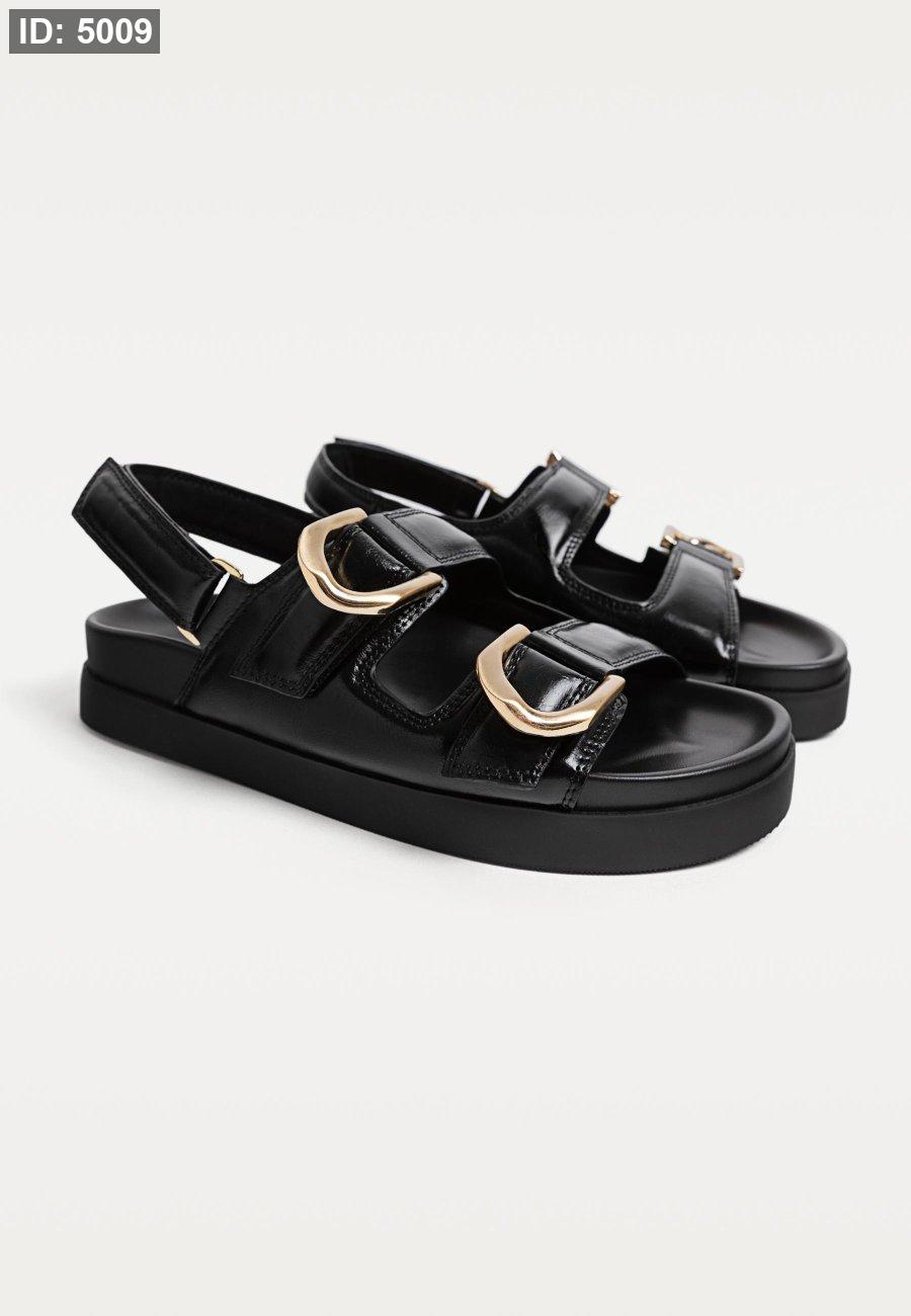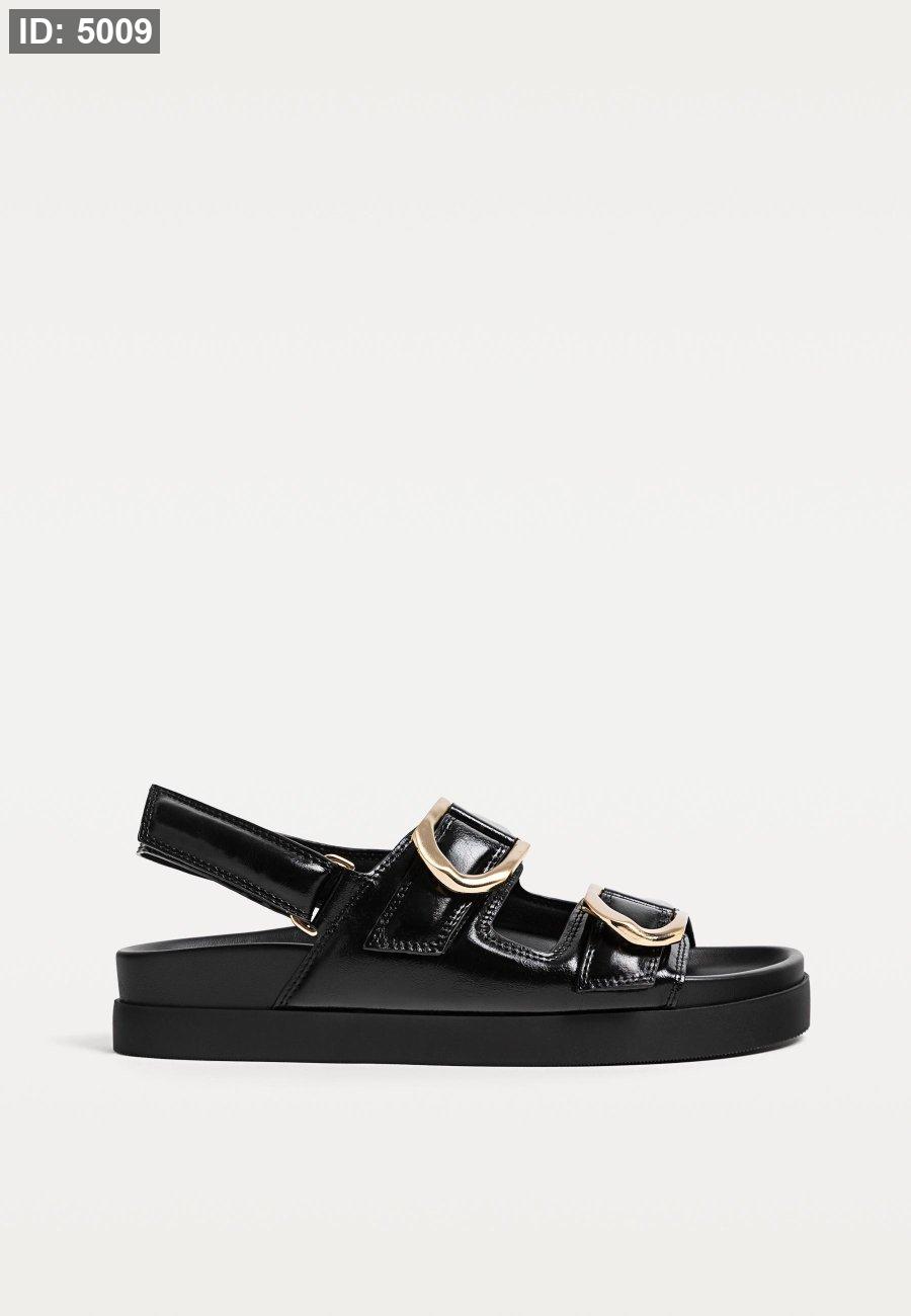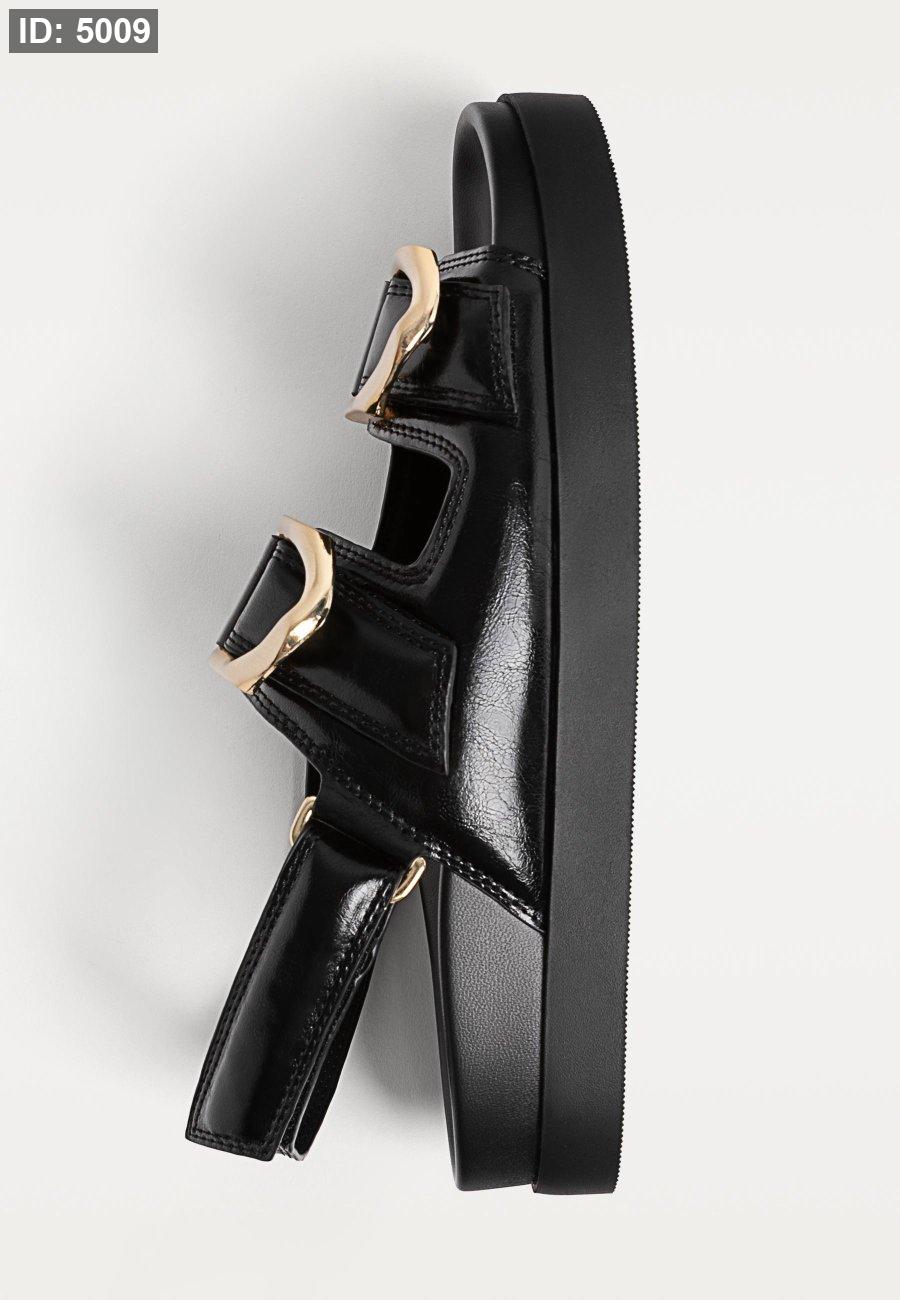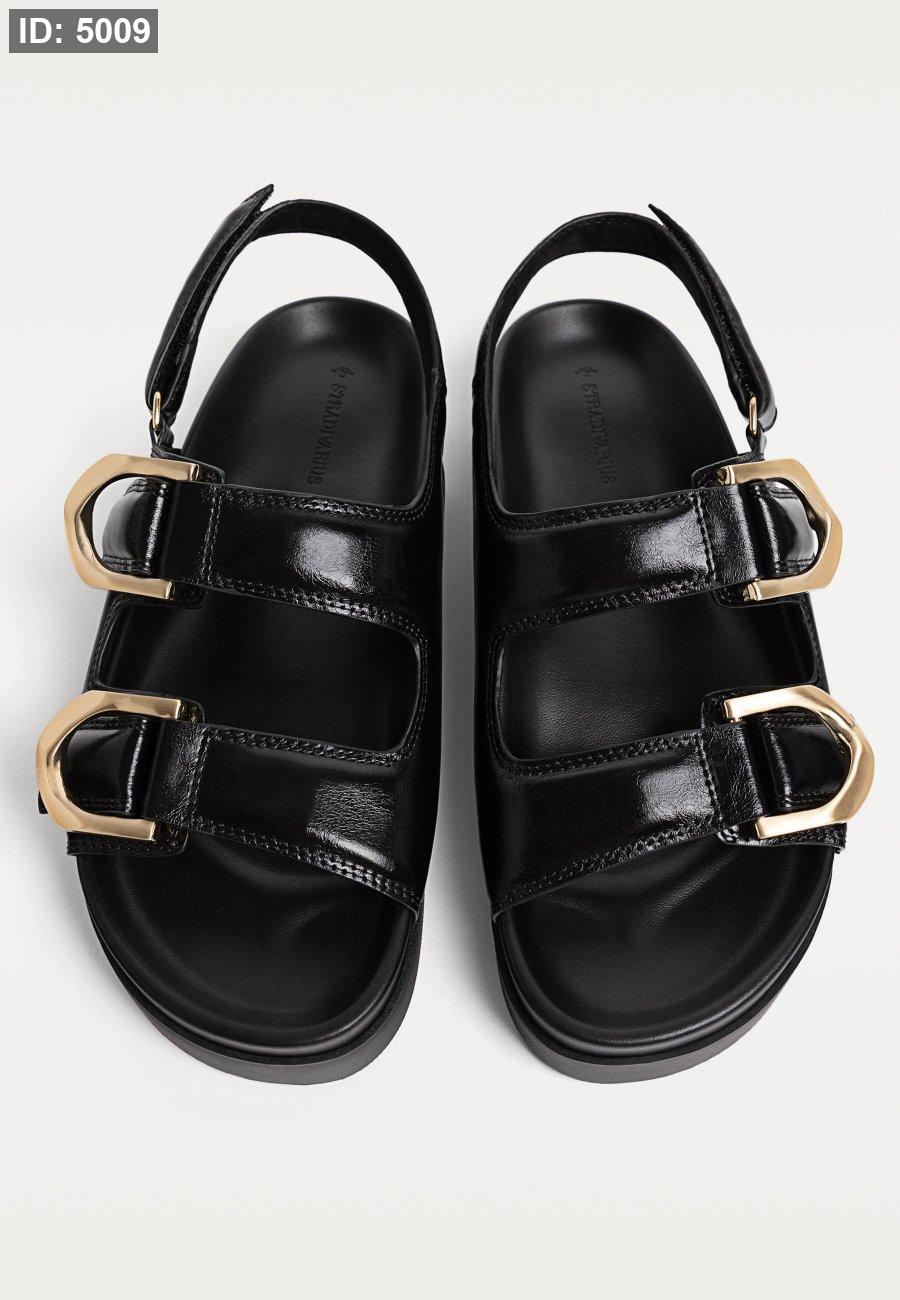 Flat slider sandals with buckles