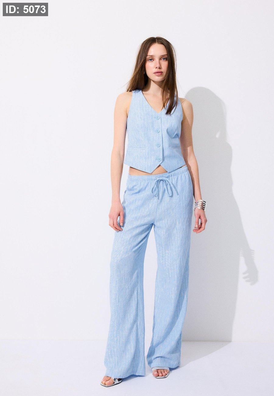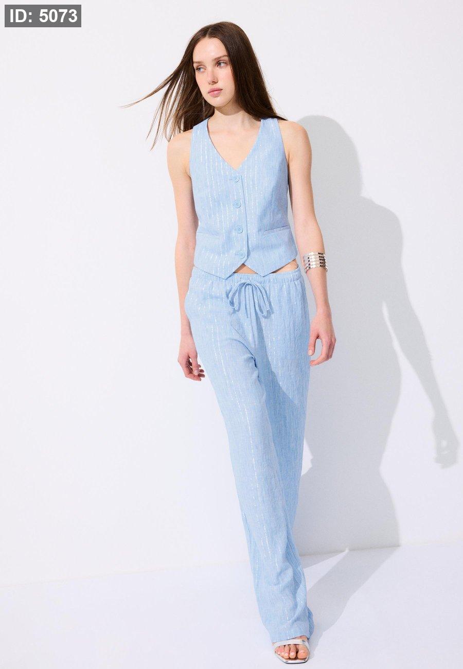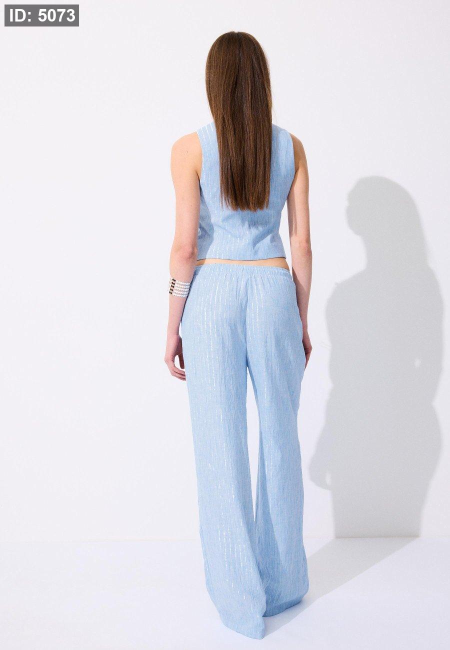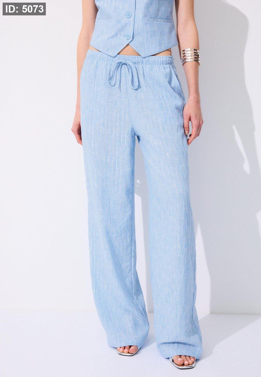 Flowing metallic thread linen-effect trousers
