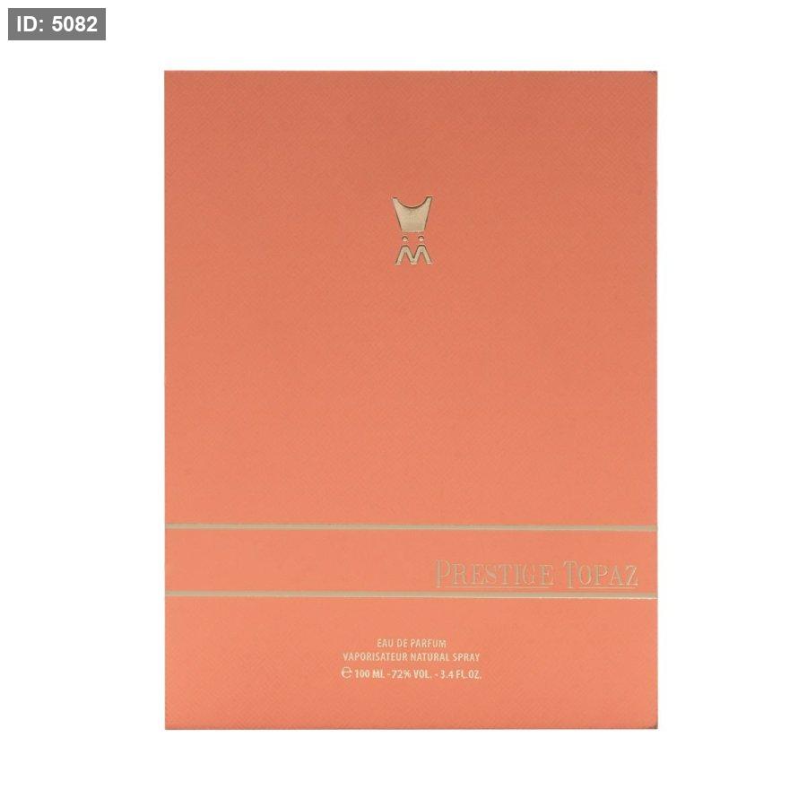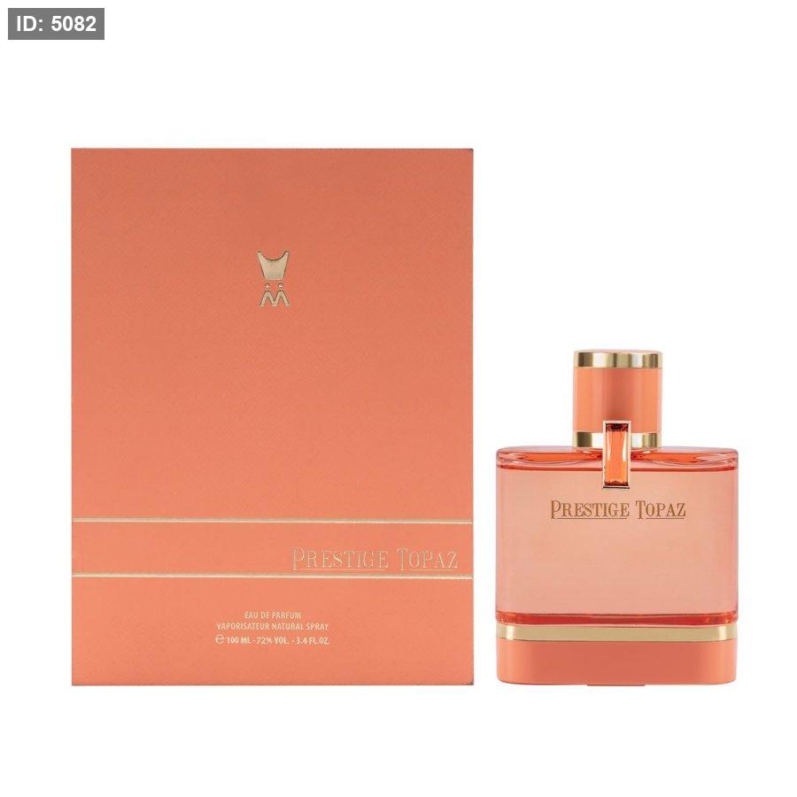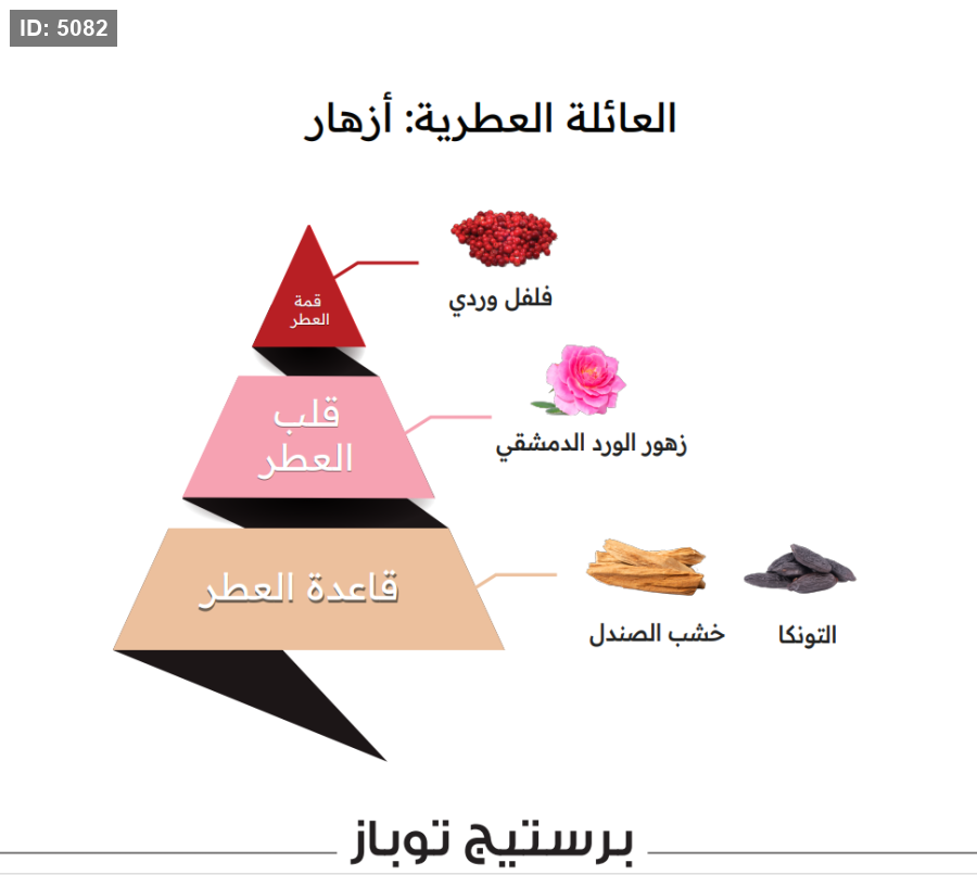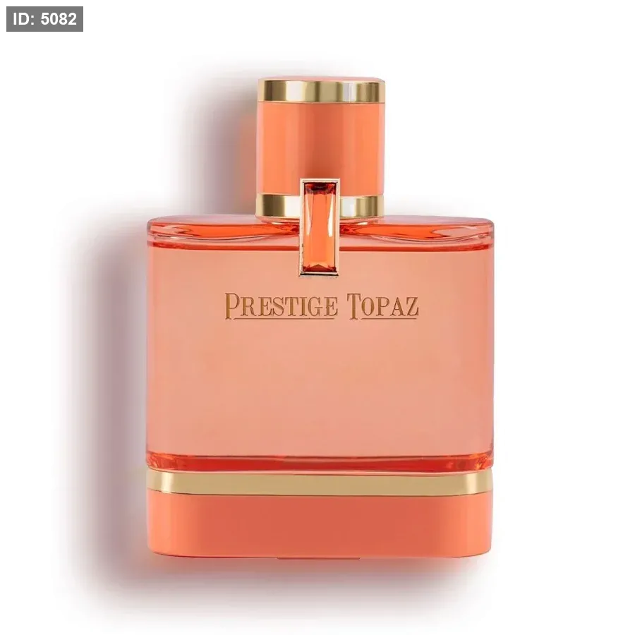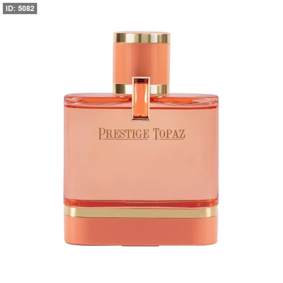 برستيج توباز بمقدمة من الفلفل الوردي تعكس بريق الياقوت الأصفر مع لمسة من الورد الدمشقي لرقة مضاعفة، ممزوجة بفخامة خشب الصندل وحبوب التونكا.