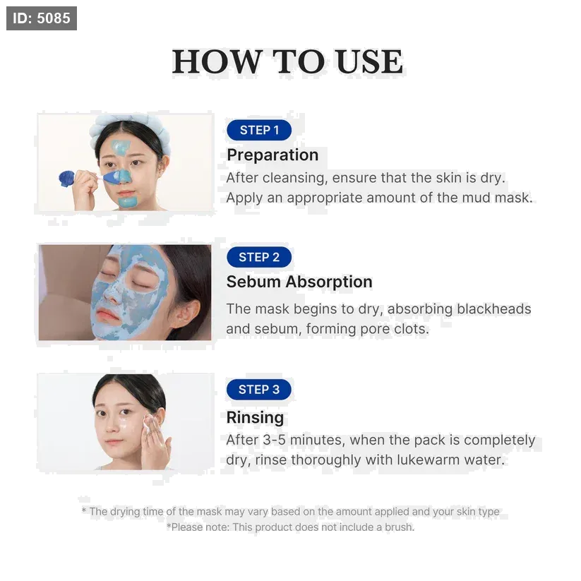 بعد التنظيف، تأكدي من جفاف البشرة. ضعي كمية مناسبة من قناع الطين، مع تجنب منطقة العينين والفم.