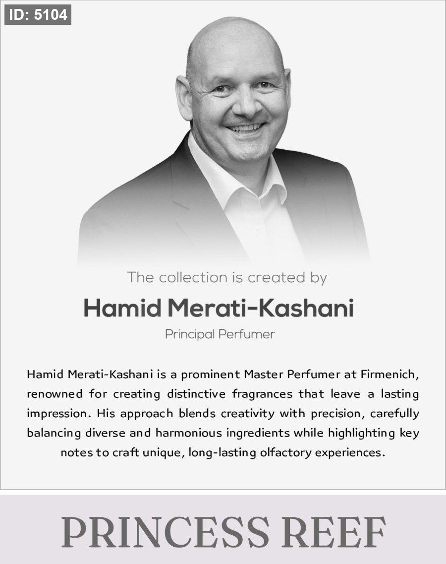 In a world where details are crafted with sheer delicacy, Hamid Kashani composed PRINCESS REEF to be a hymn celebrating femininity at its peak. Confident, radiant, and instinctively elegant. The tale begins with a vibrant burst of Mandarin, illuminating the Princess' s presence with a sparkling, modern